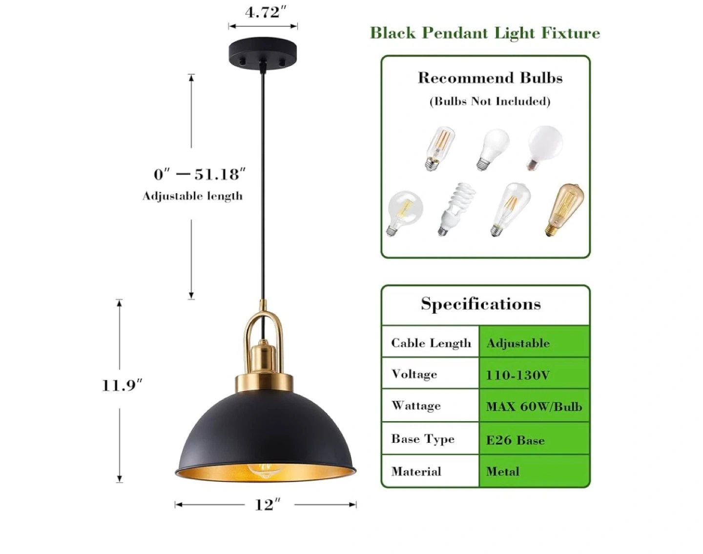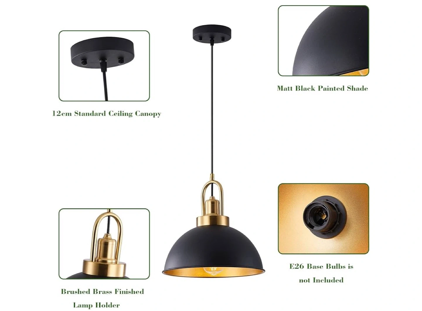 - E26 Base (bulbs not included)