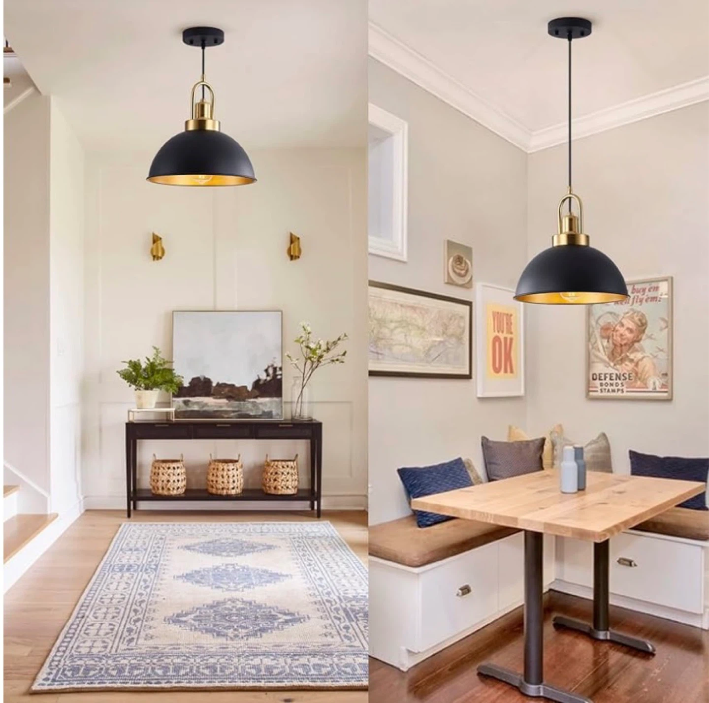 Febeleven Matte Black Farmhouse Pendant Light, Adjustable Height, Vintage Hanging Industrial Ceiling Lights Fixture for Kitchen Island Hallway Dining Room 2 Pack