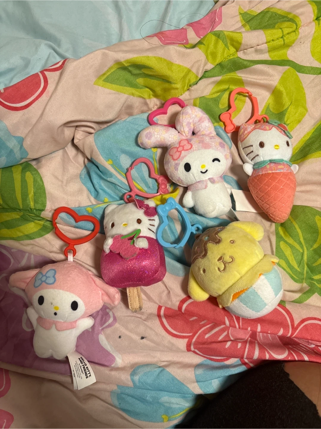 Selling a set of adorable Hello Kitty and Friends plush clip-ons! These are perfect for adding a cute touch to your bag, keys, or anywhere you like. Each plush is made with soft materials and features a convenient clip for easy attachment. They are in great condition and ready to bring joy to their new owner!