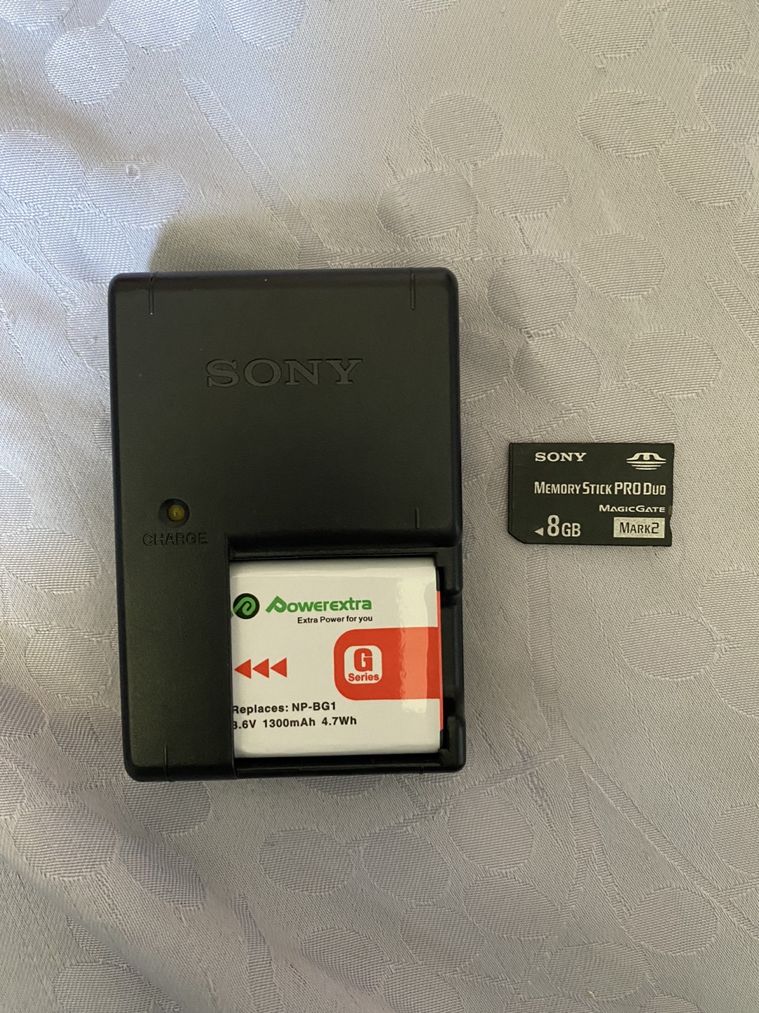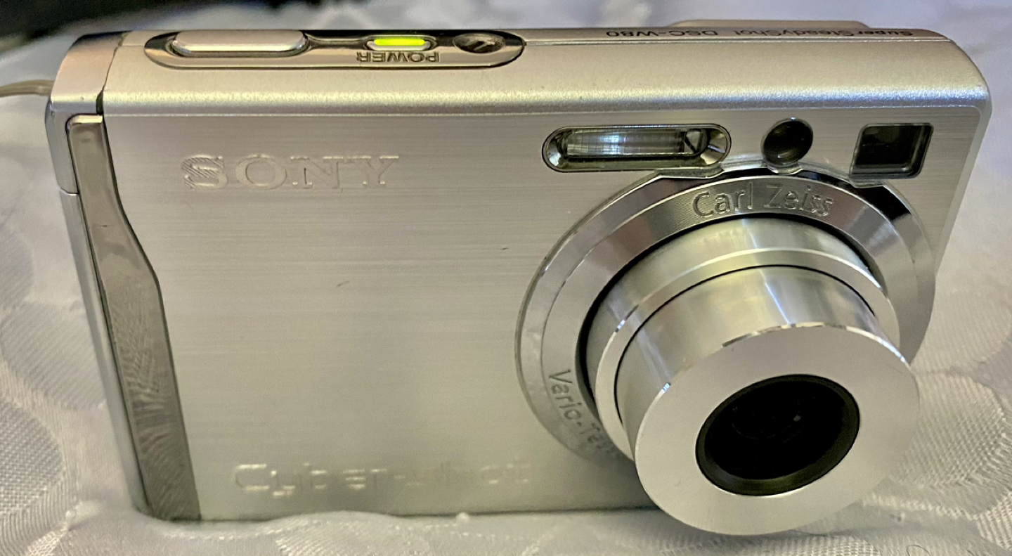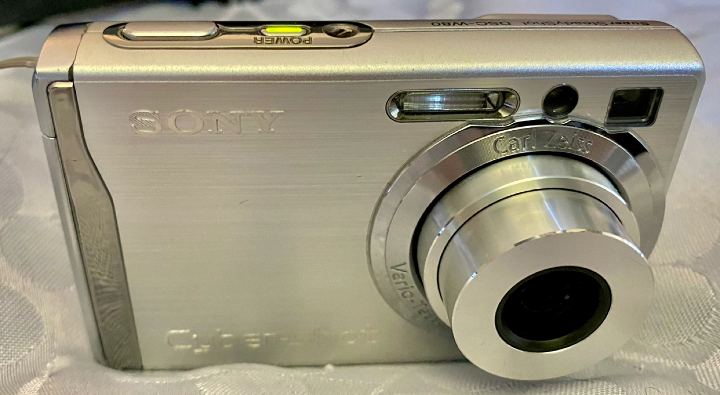 425Sony DSC-W80 camera and accessories, used, in great working shape, looks great. Comes with all shown! Hand strap, new battery, charger, USB A and audio video cables, plus Sony 8GB memory stick! Ready to use! Awesome little camera very clear photos and zoom lens! Camera bag I have listed for $5 if purchased separately but free if you take this camera! PICKUP ONLY, CASH ONLY