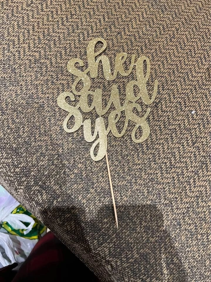 She said Yes -sparkly gold cake topper -New Never Used $10