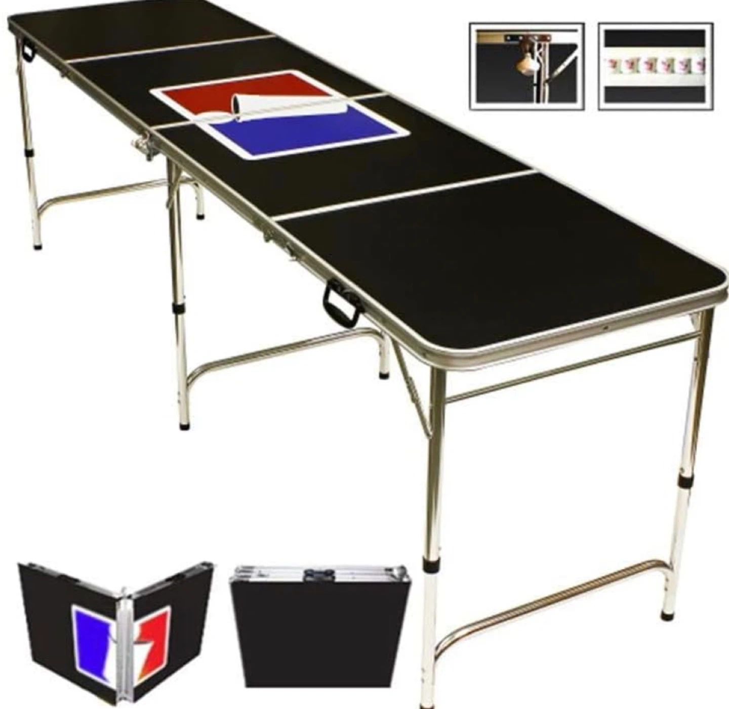 Selling BRAND NEW beer pong table, perfect for parties and get-togethers! It's black and measures 96" x 30" (8ft x 2.5ft) when open, and it folds up for easy storage and portability