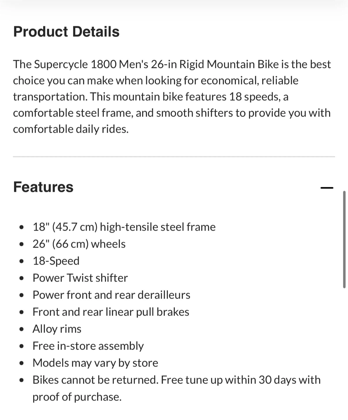 Selling a Supercycle 1800 Hardtail Mountain Bike with 26-inch wheels! It's a great choice for economical and reliable transportation.