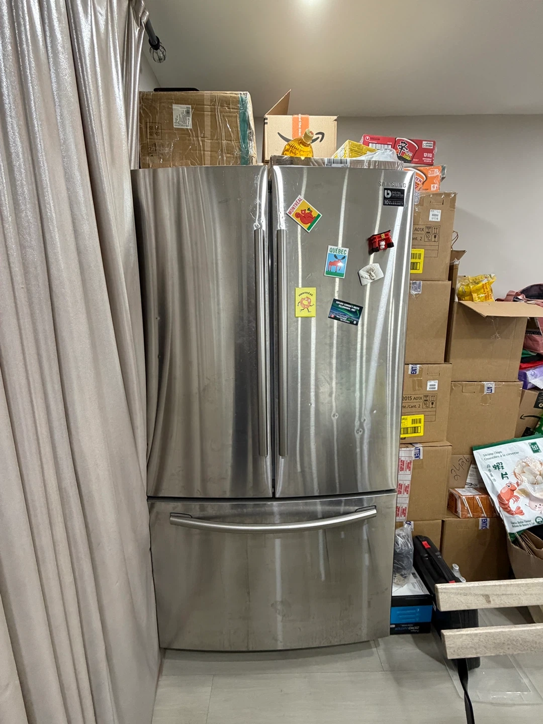 Selling a Samsung stainless steel fridge. It has some magnets on the front that can easily be removed. Feel free to message me if you're interested!