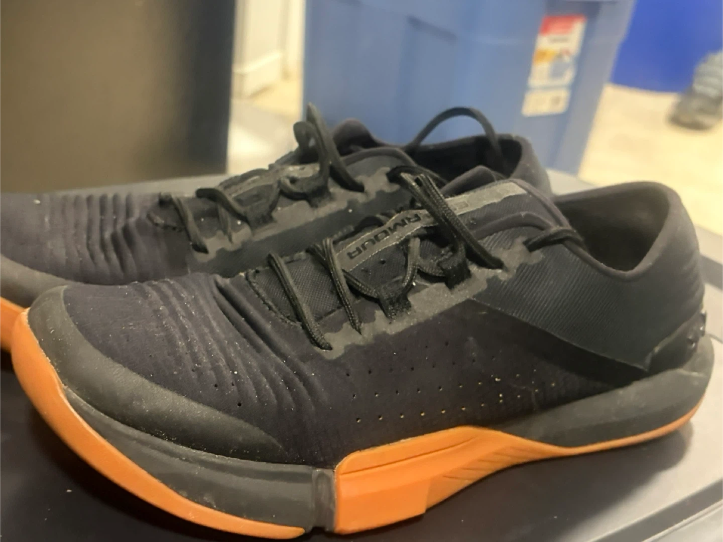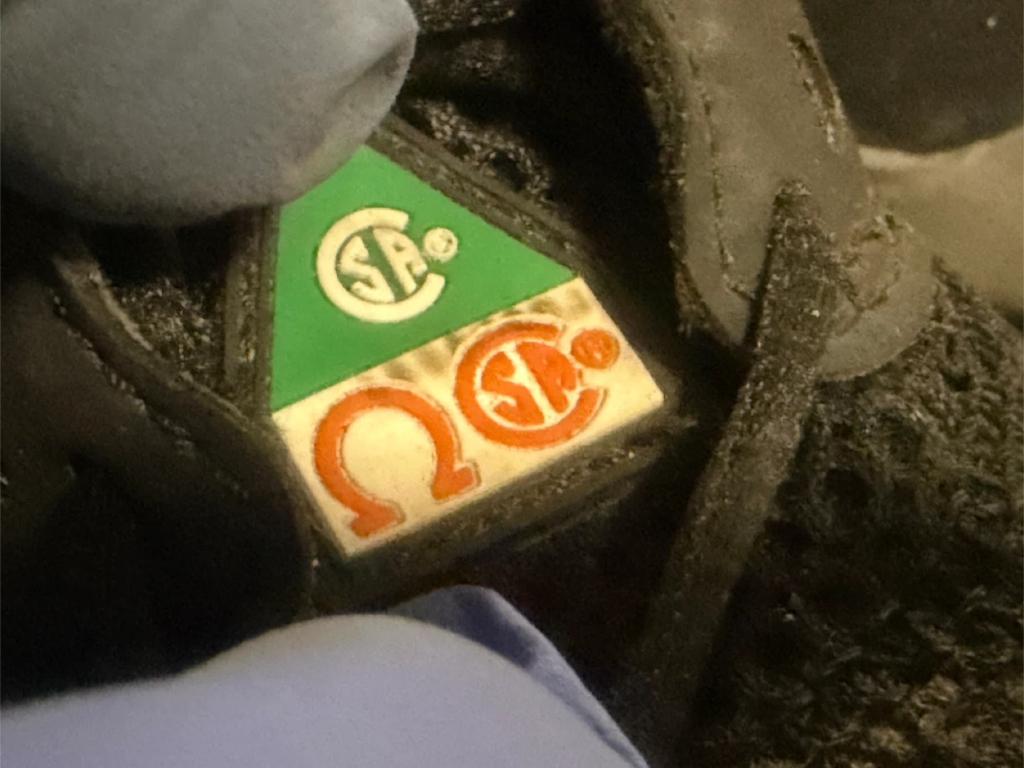 “CSA Z195-14 certified safety shoes. Steel/composite toe, puncture resistant, electric shock resistant. Lightweight athletic style. Clean condition, lots of life left.”