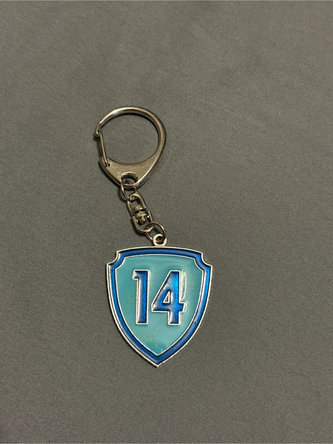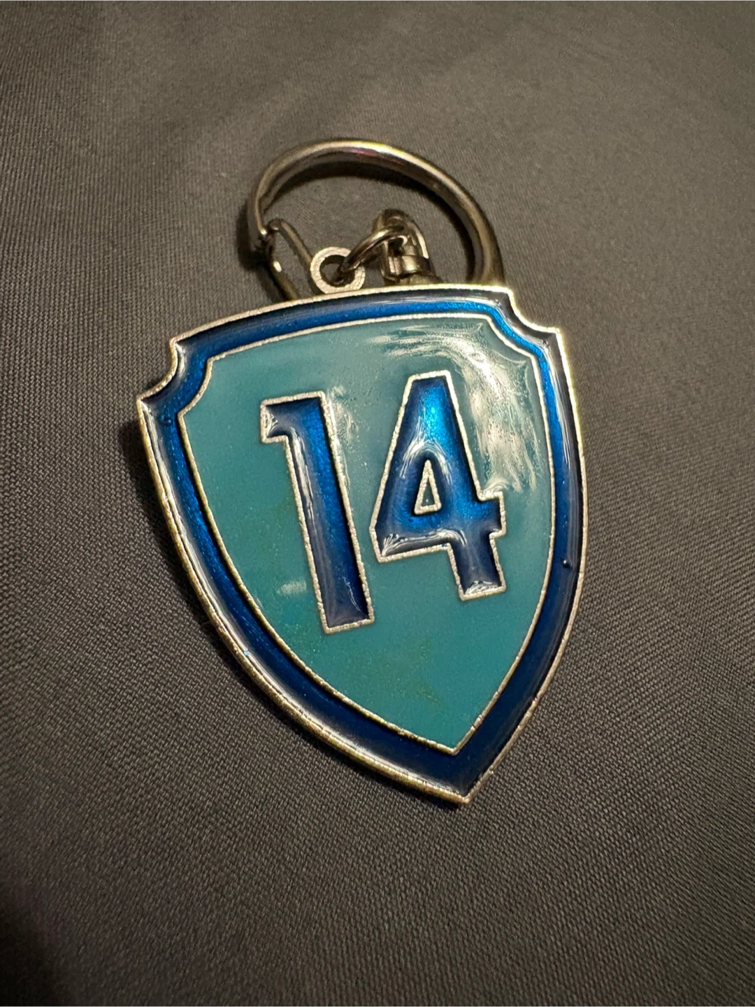 Hallmark keychain with the number 14 on a shield shape. It's in great condition and would be perfect for a collector or anyone who loves keychains!