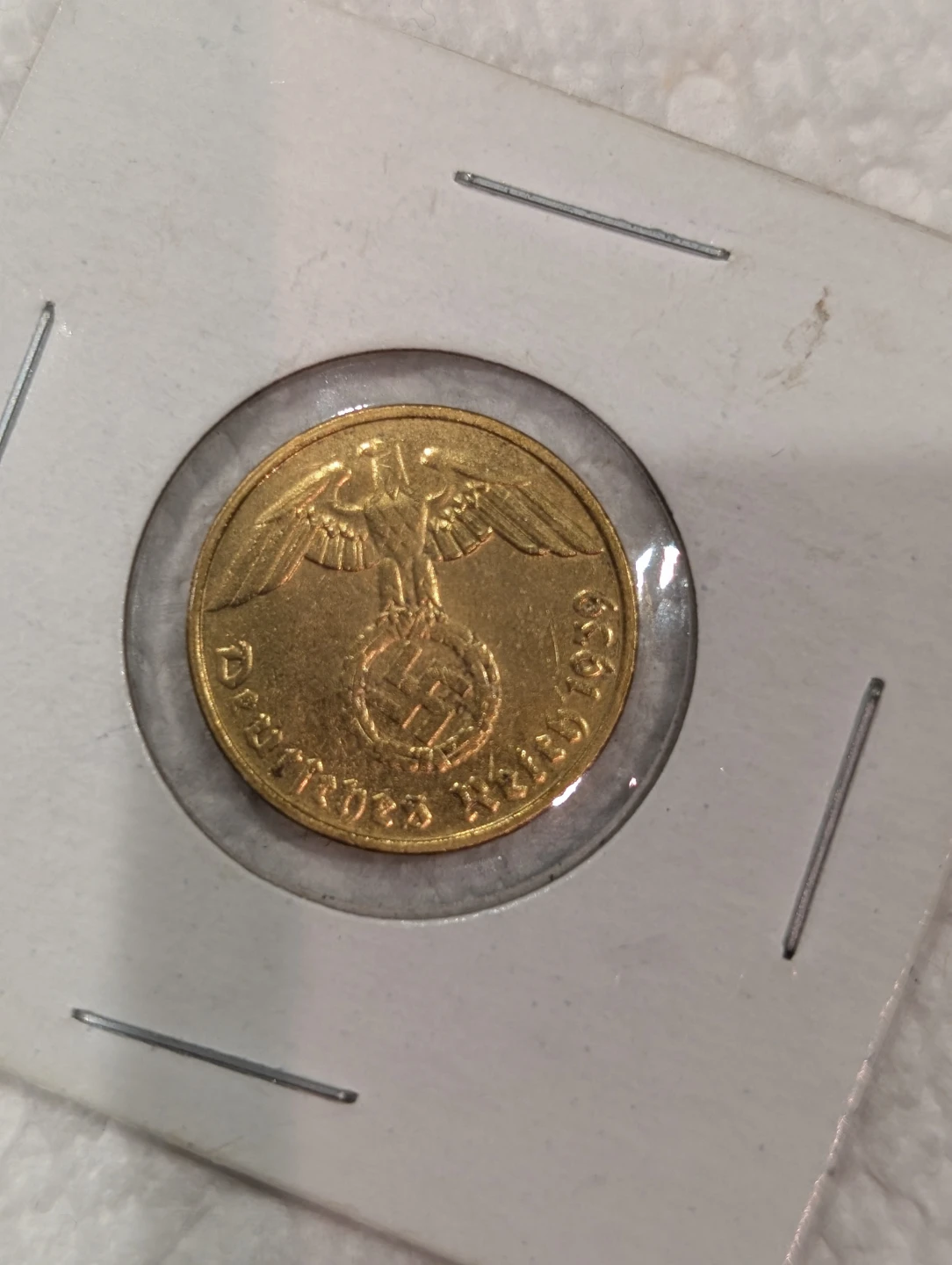 2 Pfennig 1939- G coin old WW2 antique Germany 3rd Reich SS Nazi Eagle gold plated in excellent condition