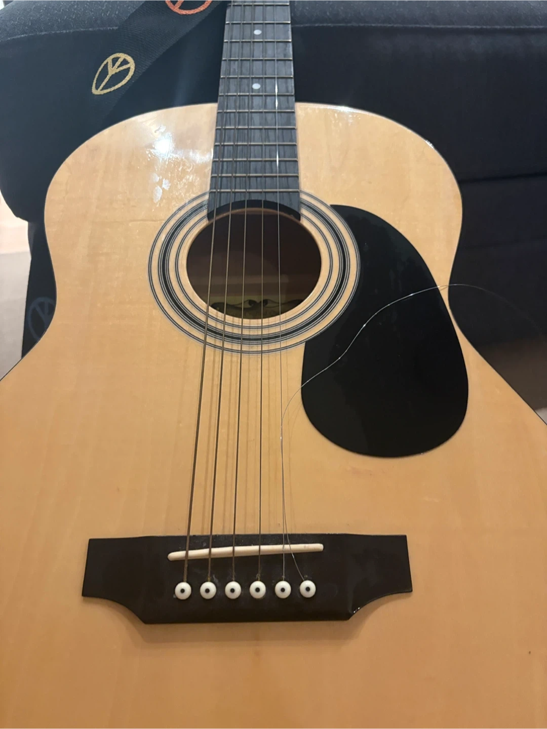 Selling a Montana acoustic guitar. It has a guitar strap attached, 1 string needs replacement. Otherwise great condition.
