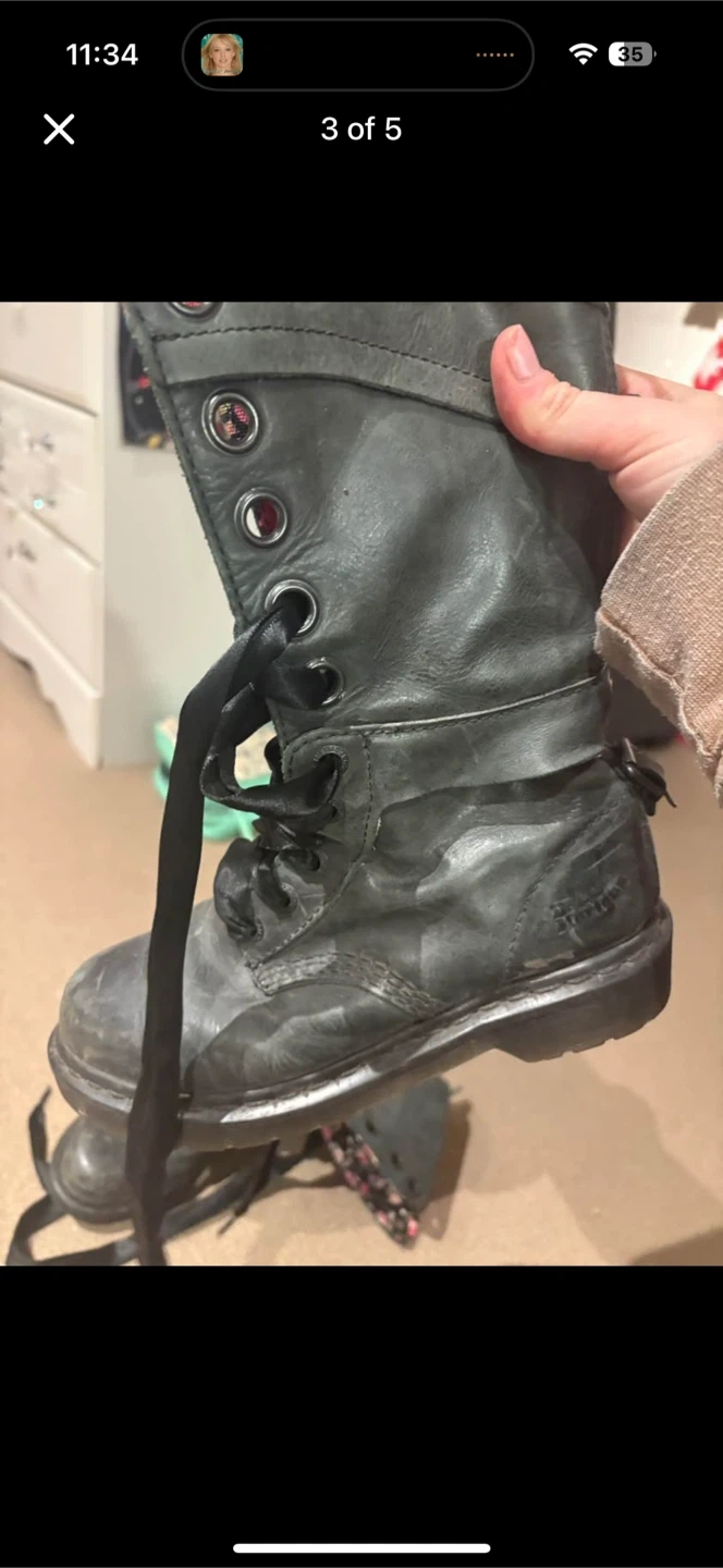 Selling a pair of Dr. Martens boots! They're black leather with a floral interior. Great for adding a bit of edge to your look