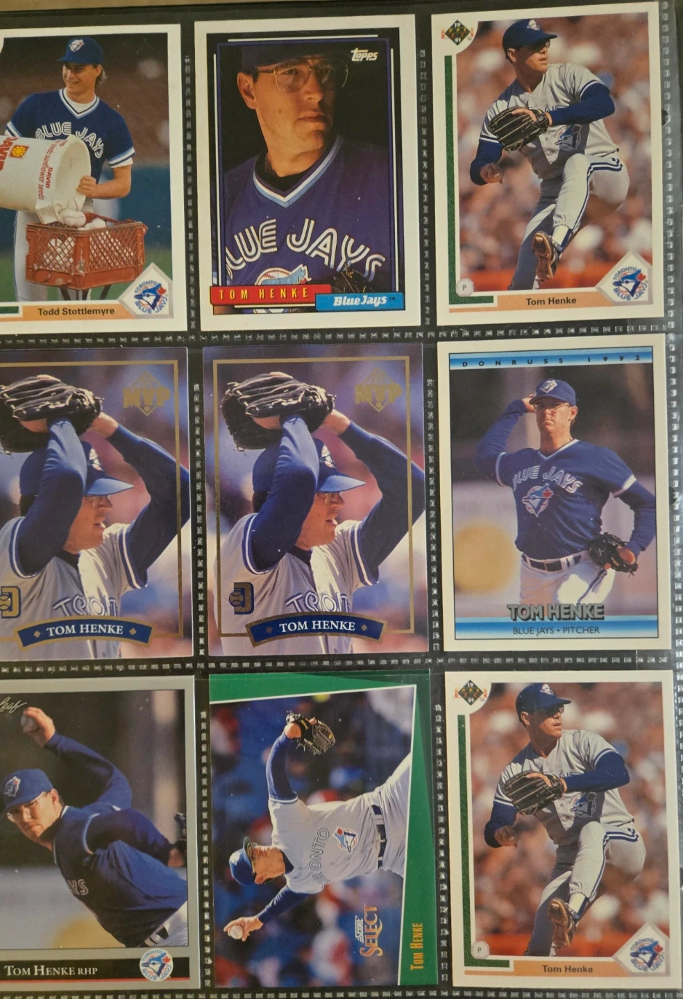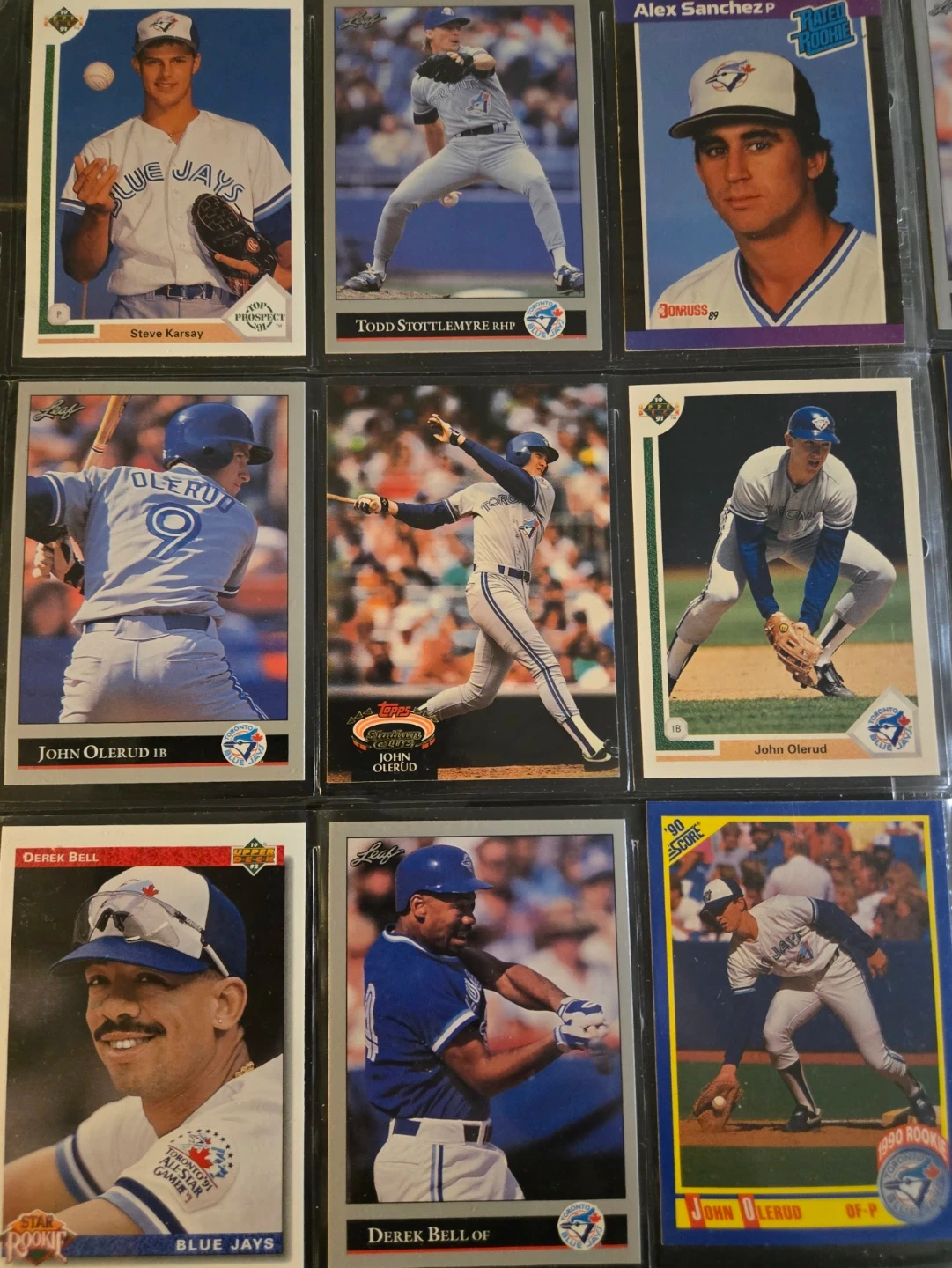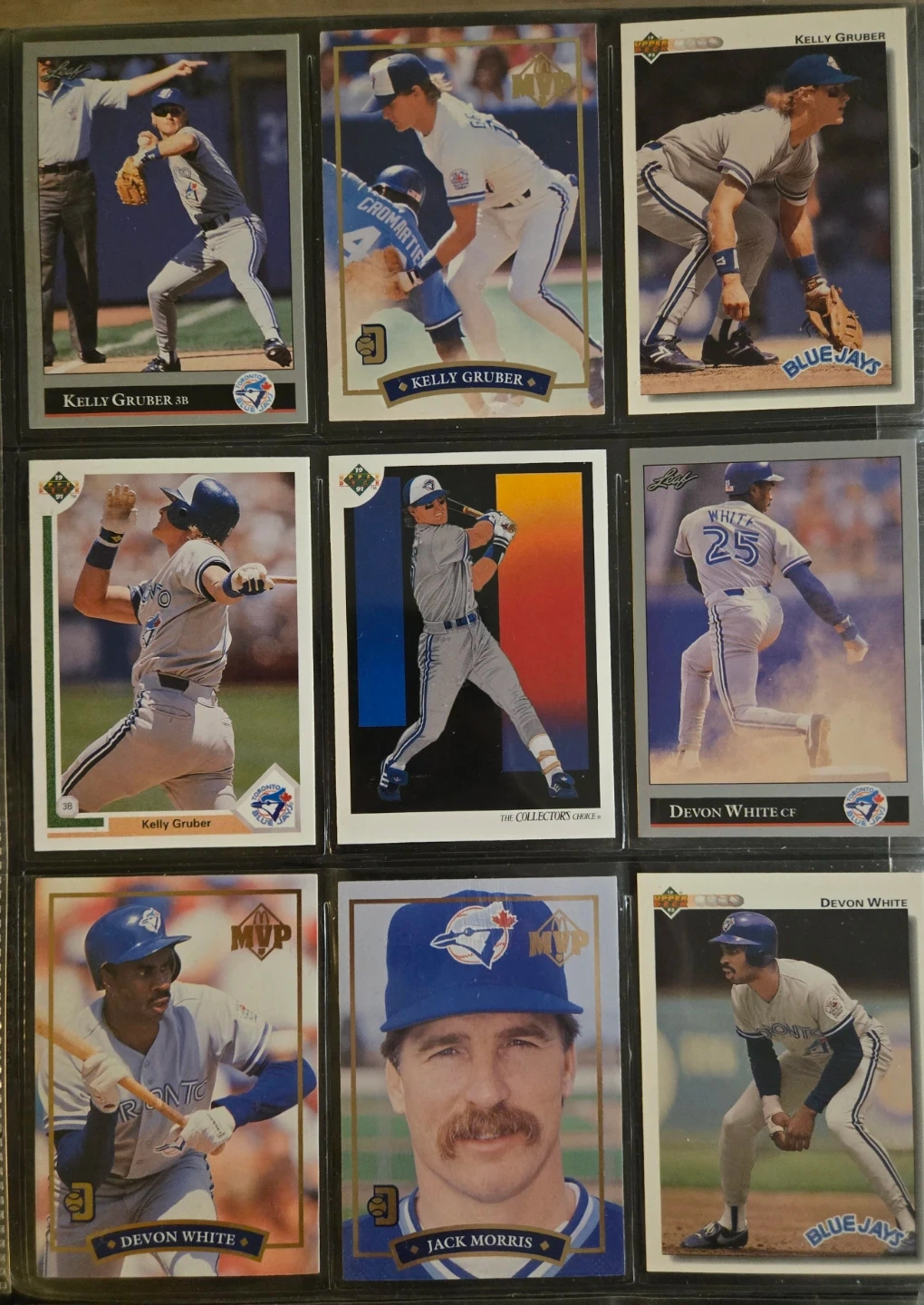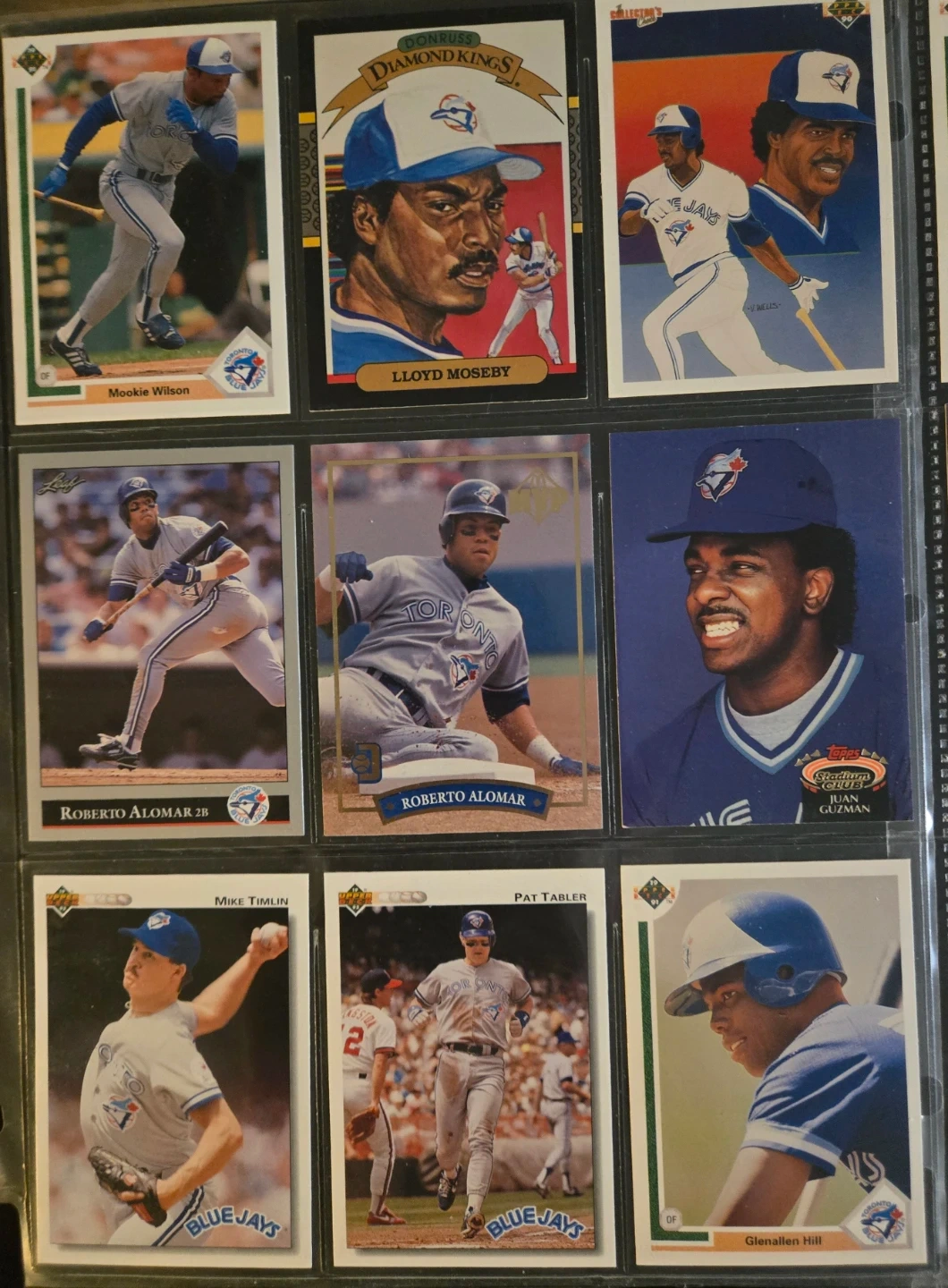 Selling a 90 Card collection of Vintage Late 1980's to early 1990's Blue Jays baseball cards. A variety of players that Include Alomar, Carter, Henke, Winfield, Guzman, Gruber, Borders, Ward, McGriff, Moseby, Morris and Many more. Great for any Blue Jays fan or baseball card collector!