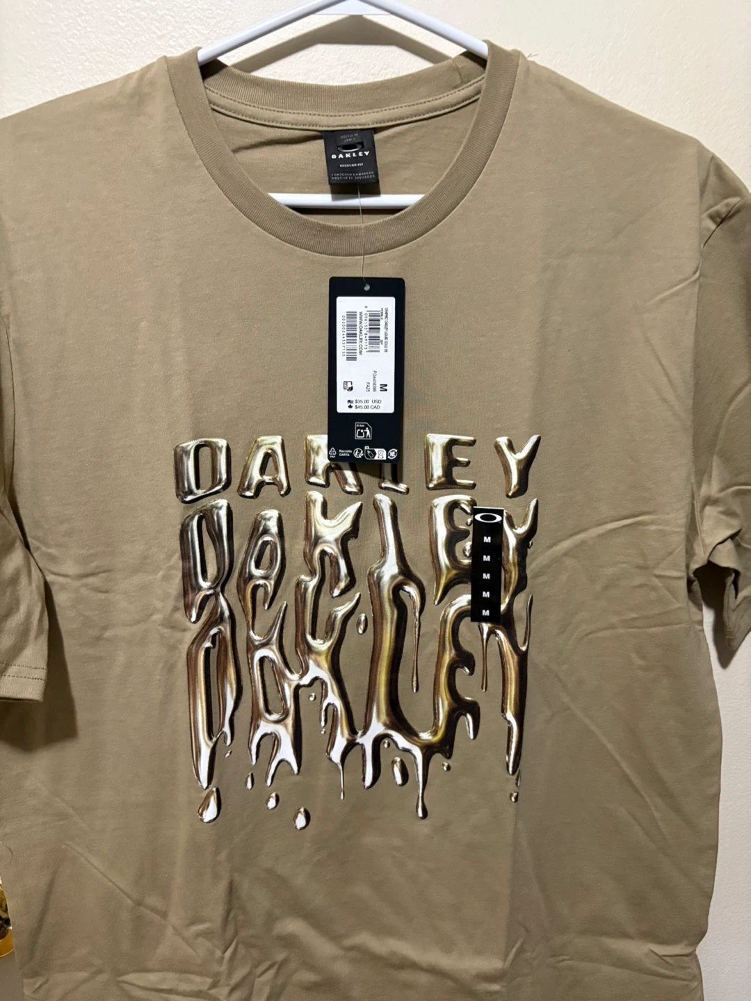 The shirt features a unique dripping Oakley logo design. It's in great condition and ready for a new owner!