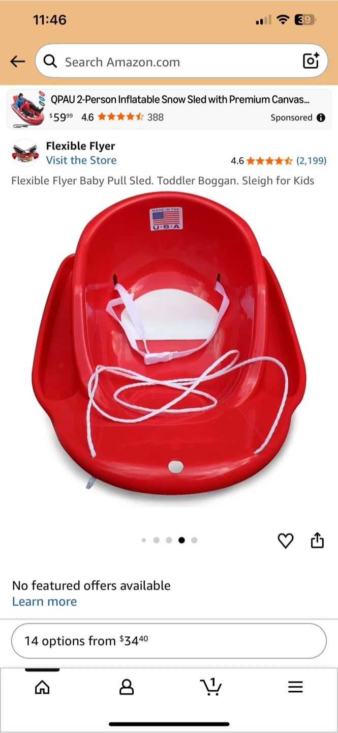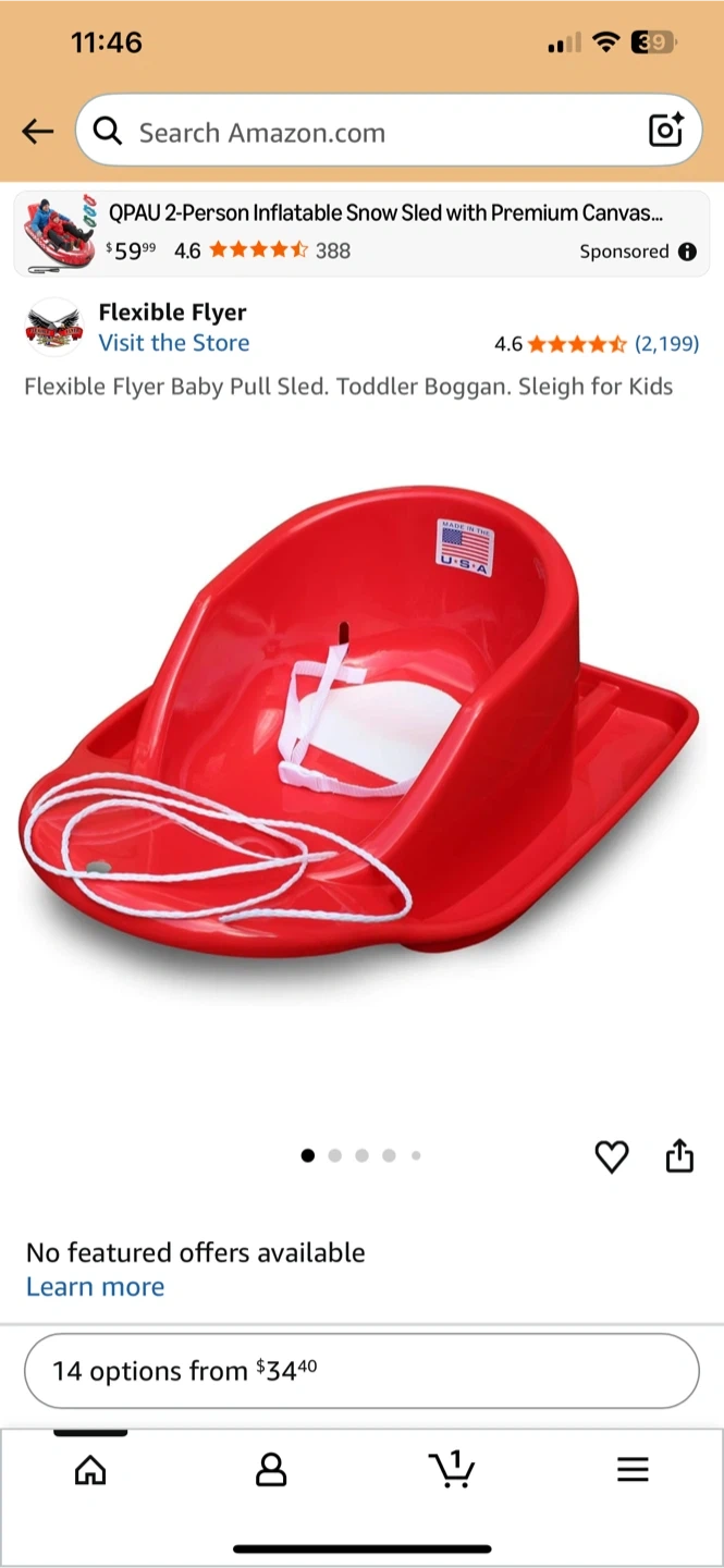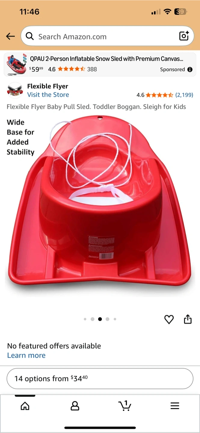 Selling a Flexible Flyer Baby Pull Sled! This toddler boggan is perfect for some winter fun. It features a wide base for added stability, so your little one will be safe and secure while you pull them along. Get ready for some snowy adventures! The sled that I am selling is a BLUE color.