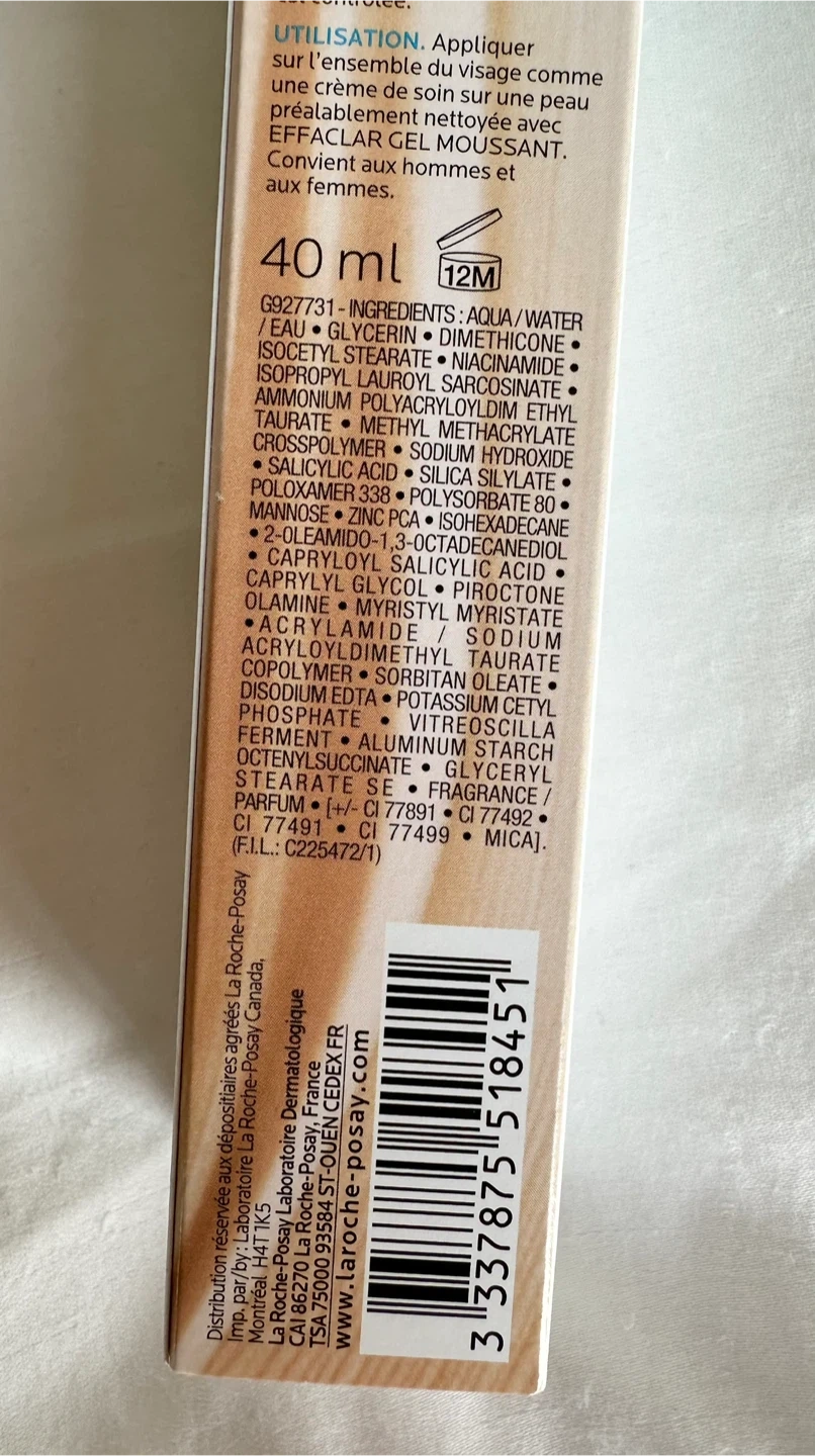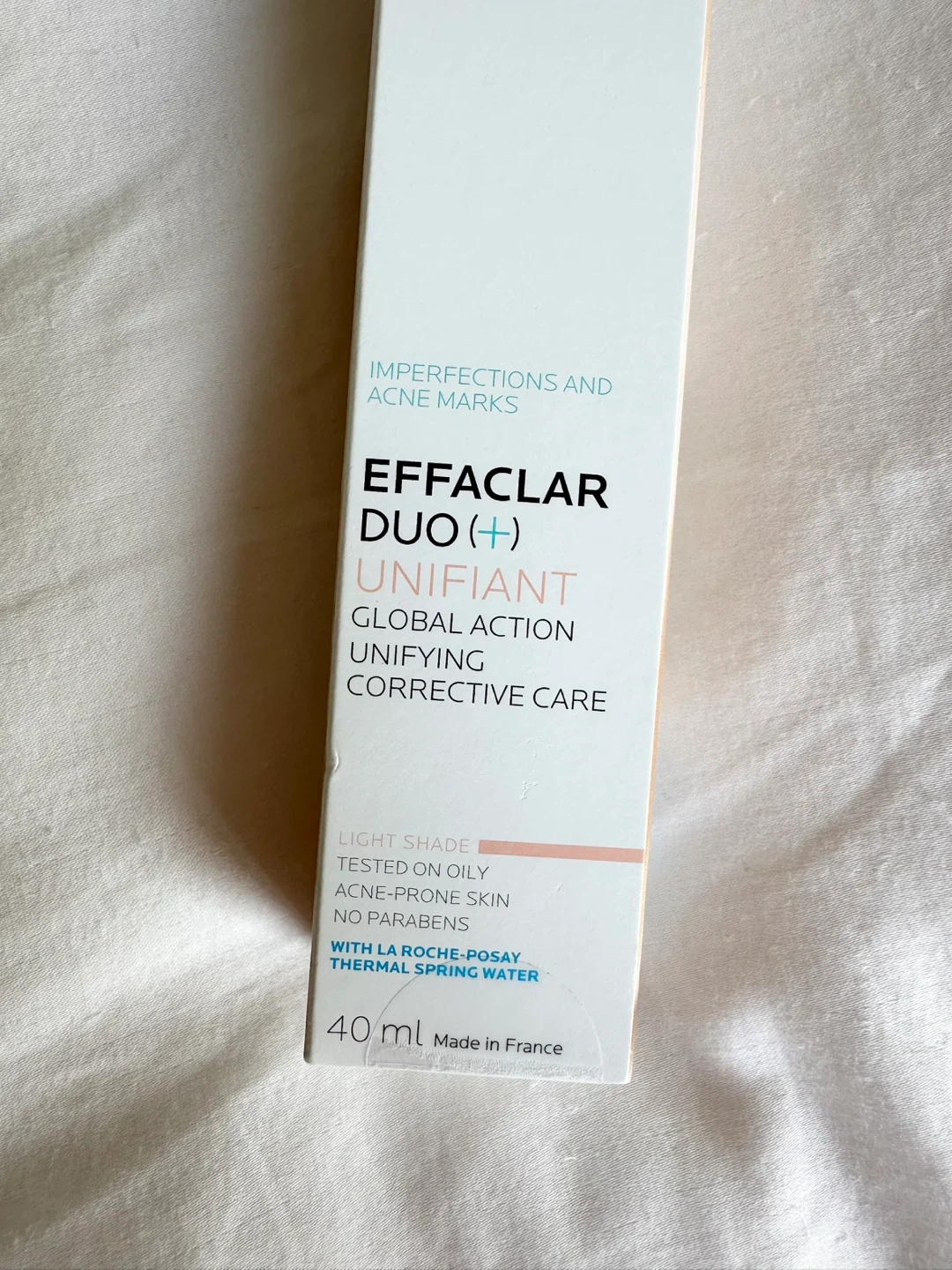 New in box La Roche-Posay Effaclar Duo(+) Unifiant, a global action unifying corrective care treatment for imperfections and acne marks in light shade.
