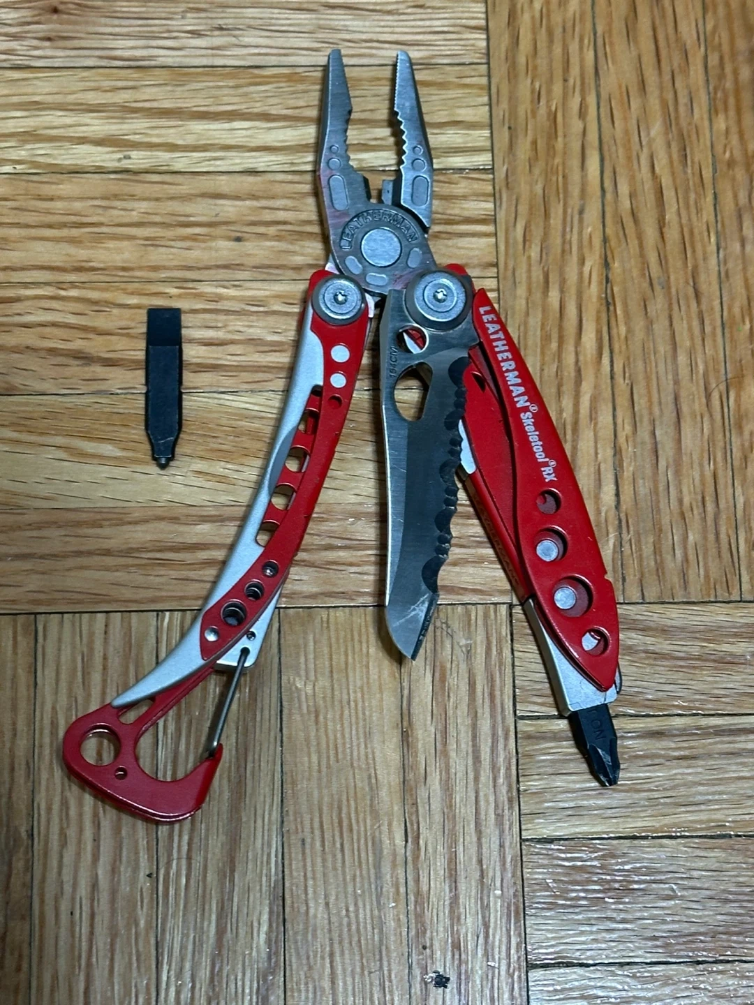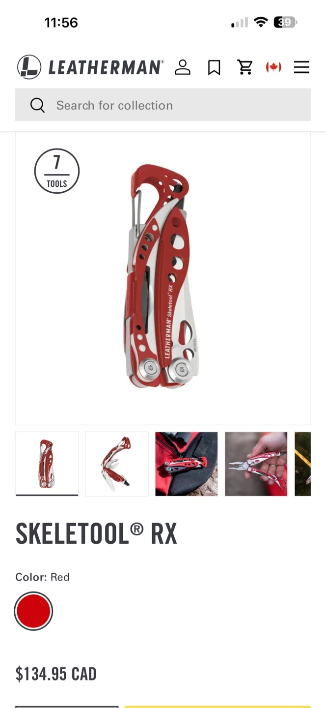 Selling a Leatherman Skeletool RX multi-tool in red! This handy tool features 7 tools in one, including pliers, a knife, and a screwdriver. It's lightweight and portable, perfect for on-the-go tasks. Originally bought for $134.95 CAD