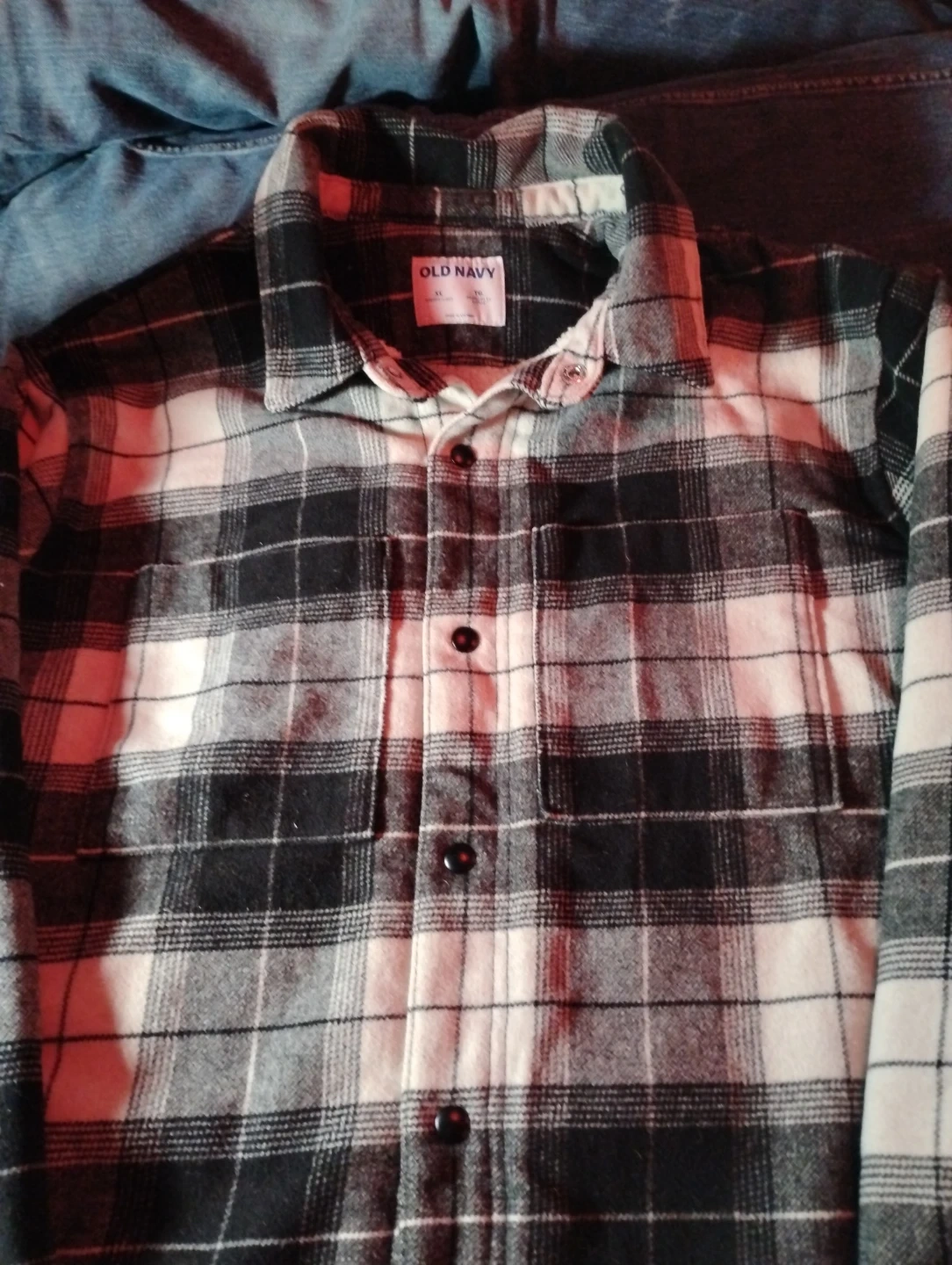 Cozy Old Navy flannel shirt in a classic black and white plaid pattern. It's a men's size XL and perfect for layering or wearing on its own. In great condition!