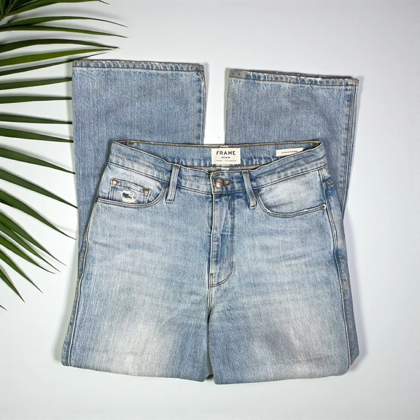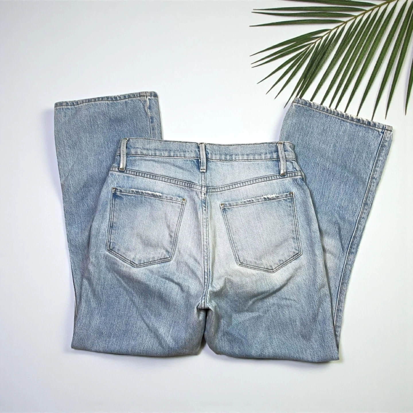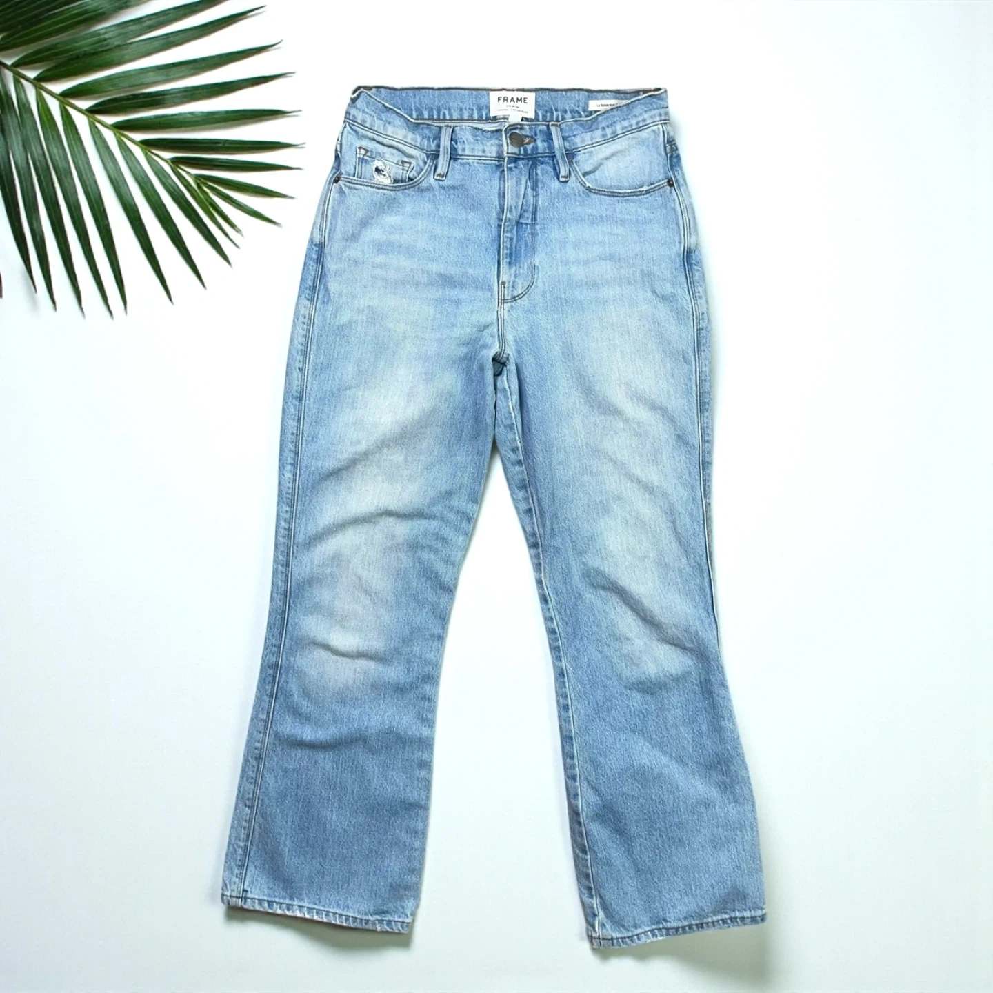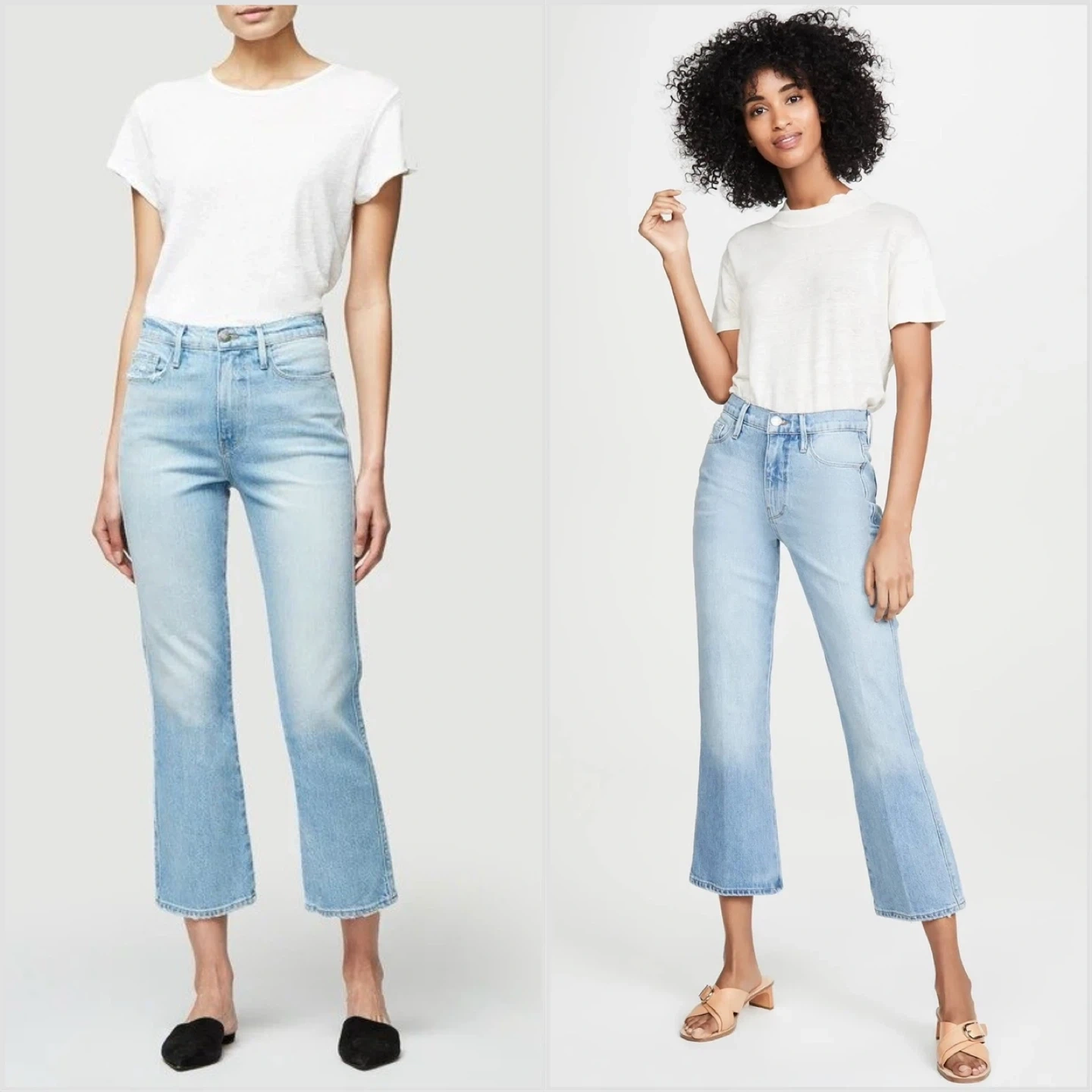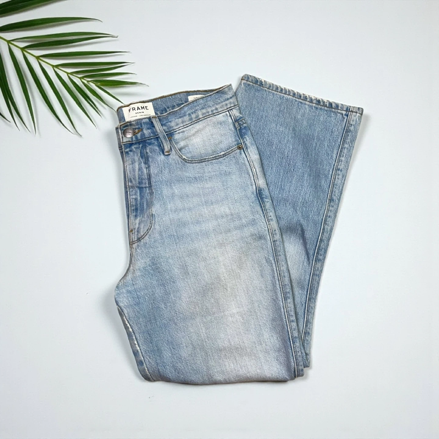 A fresh take on the boot cut, FRAME's signature Le Sylvie jeans are cut with a subtle kick flare for a classic silhouette that flatters the legs, while the high rise offers a structured, elongating fit in their Elena light wash denim with a vintage fade for a lived-in look.