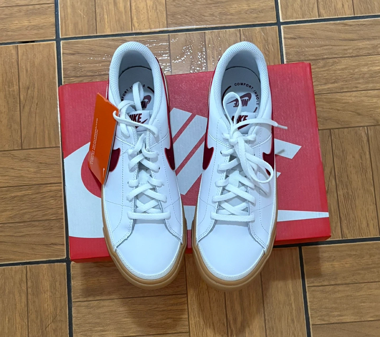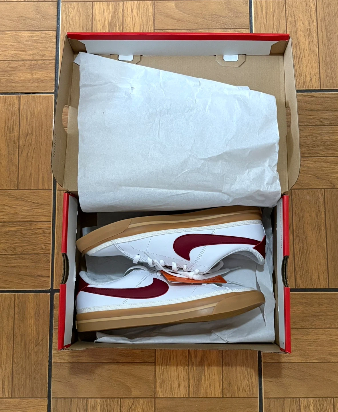 These Nike Court Legacy sneakers are in great condition and ready for a new adventure! The classic white and team red colourway with the gum sole is super stylish. They're perfect for everyday wear.