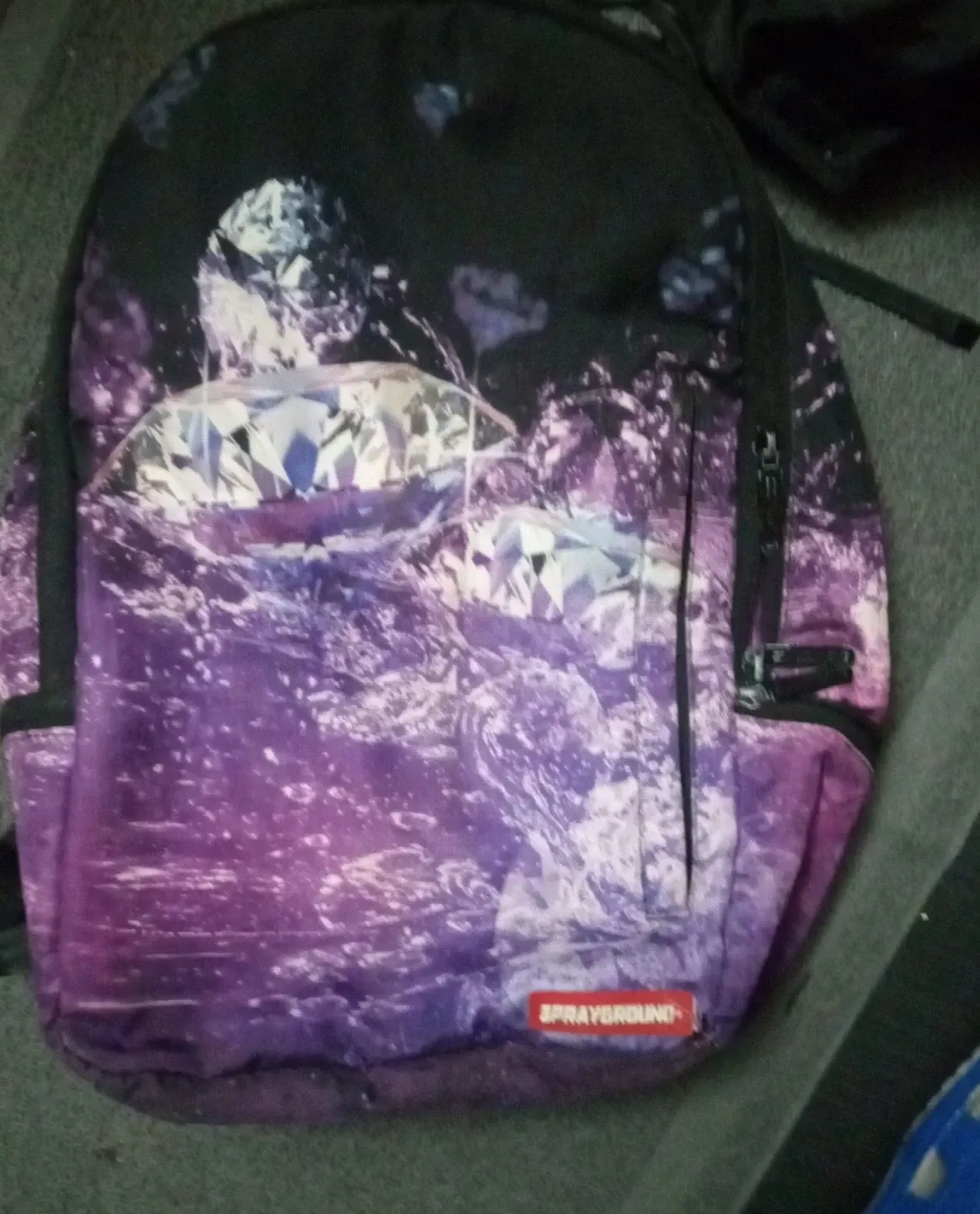 Selling a Sprayground backpack with a cool diamond design in purple and black! It's in great condition and ready for a new adventure