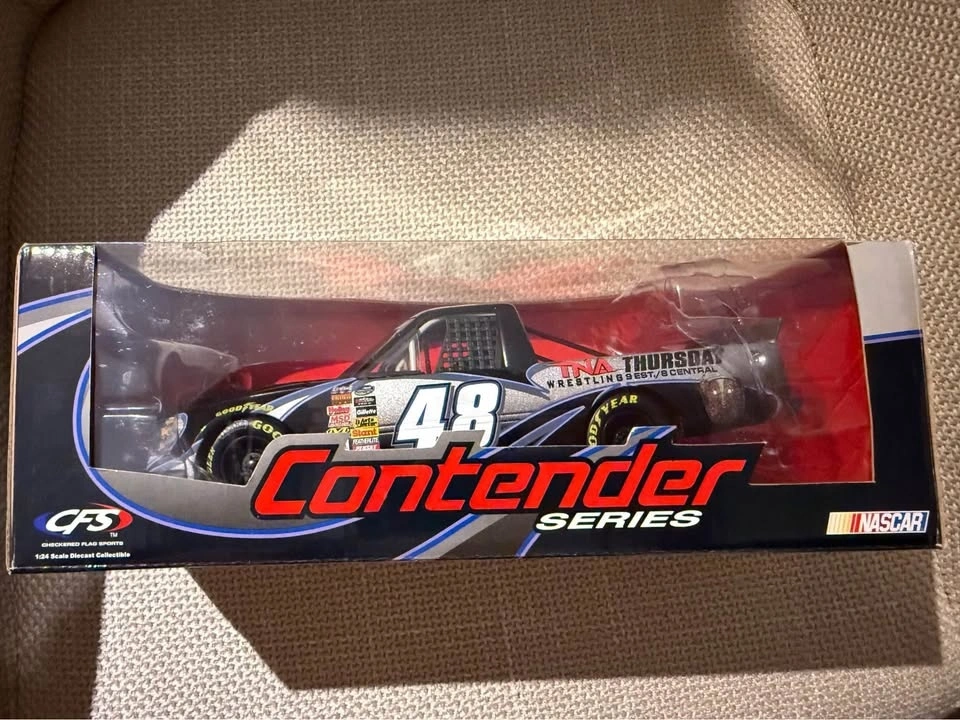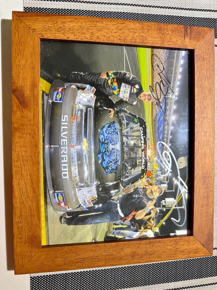 Nascar Camping Truck serie diecast and a sign Jeff Hardy (TNA) and Hernie Sadler picture framed