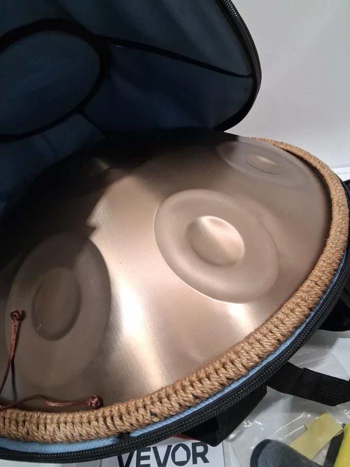 Discover the soothing sounds of this Vevor 22-inch handpan drum, designed with 12 notes for both beginners and professional musicians. This instrument is practically brand new, accessories sealed in its original packaging, promising an untouched auditory experience. The steel hand drum is carefully hand-tuned to create ethereal, relaxing tones that bring comfort and peace, making it perfect for meditation, yoga, or simply unwinding after a long day.