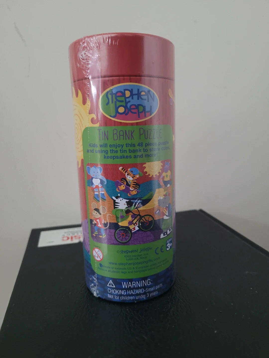 Brand new Stephen Joseph Tin Bank Puzzle! Kids will enjoy this 48 piece puzzle and using the tin bank to store coins, keepsakes and more! Suitable for ages 3+