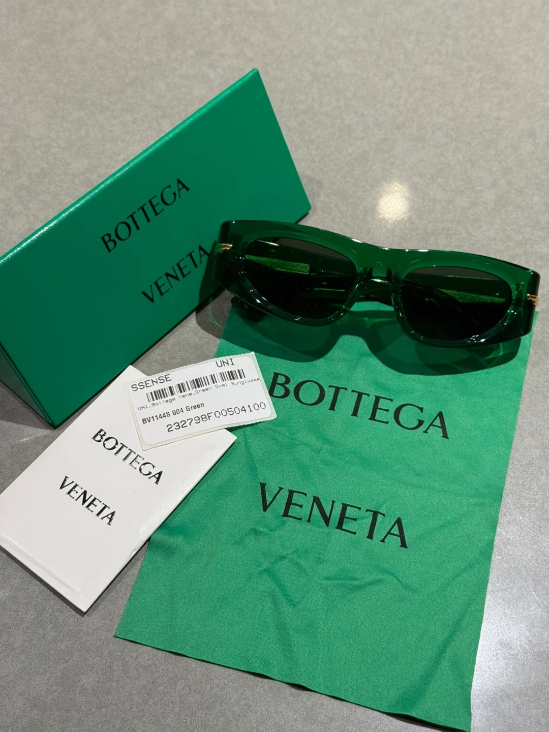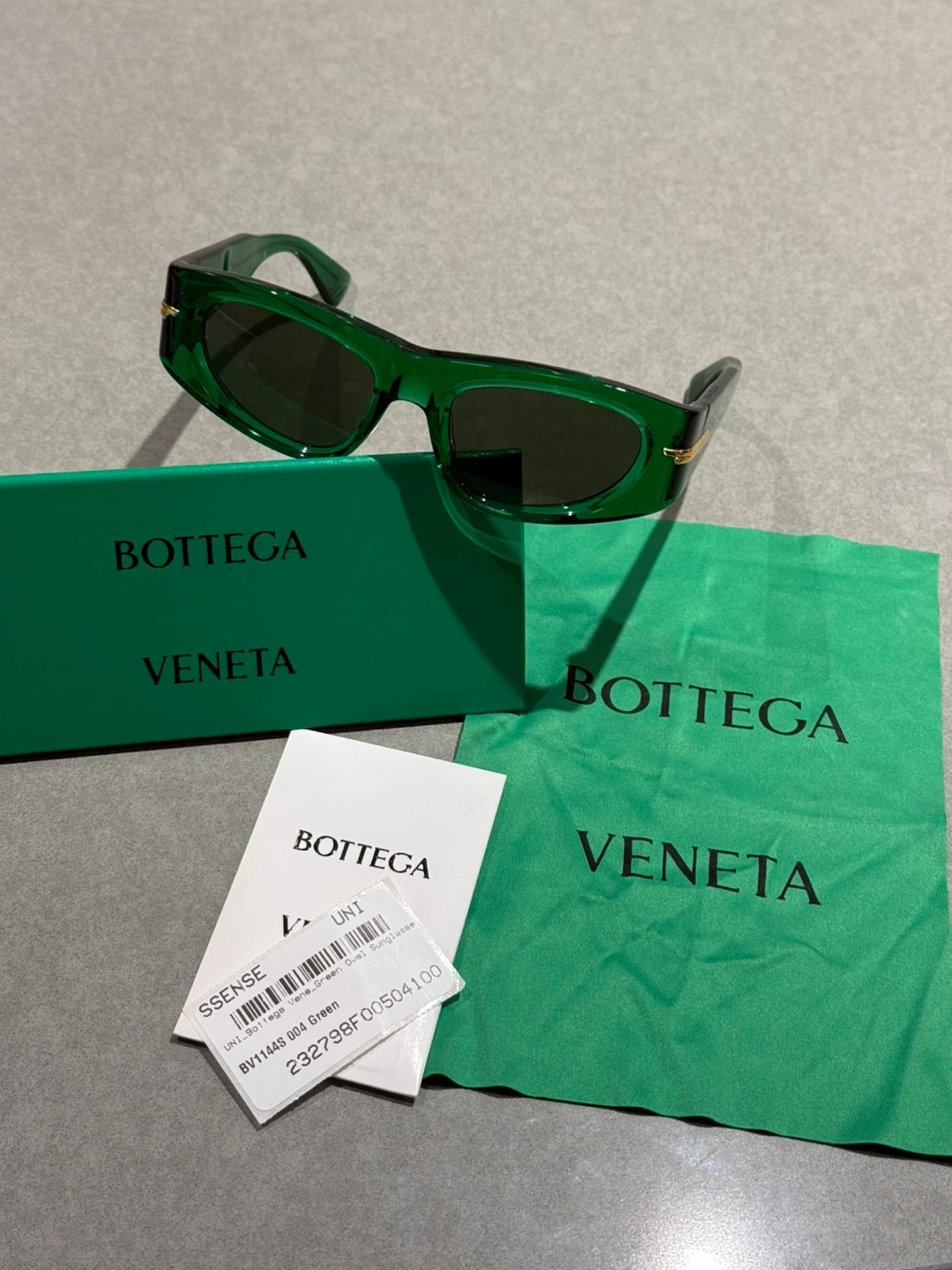 Selling a pair of Bottega Veneta sunglasses, model BV1144S 004, in a vibrant green colour! These stylish sunglasses are in excellent condition and come with the original box and case. Perfect for adding a touch of luxury to your look!