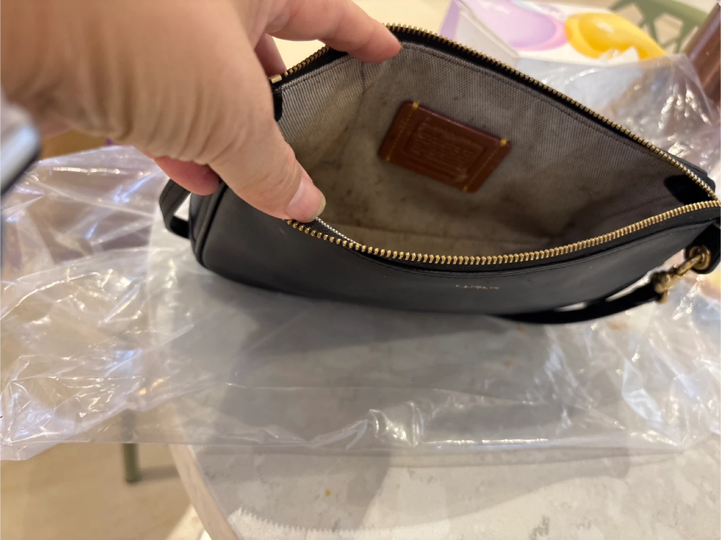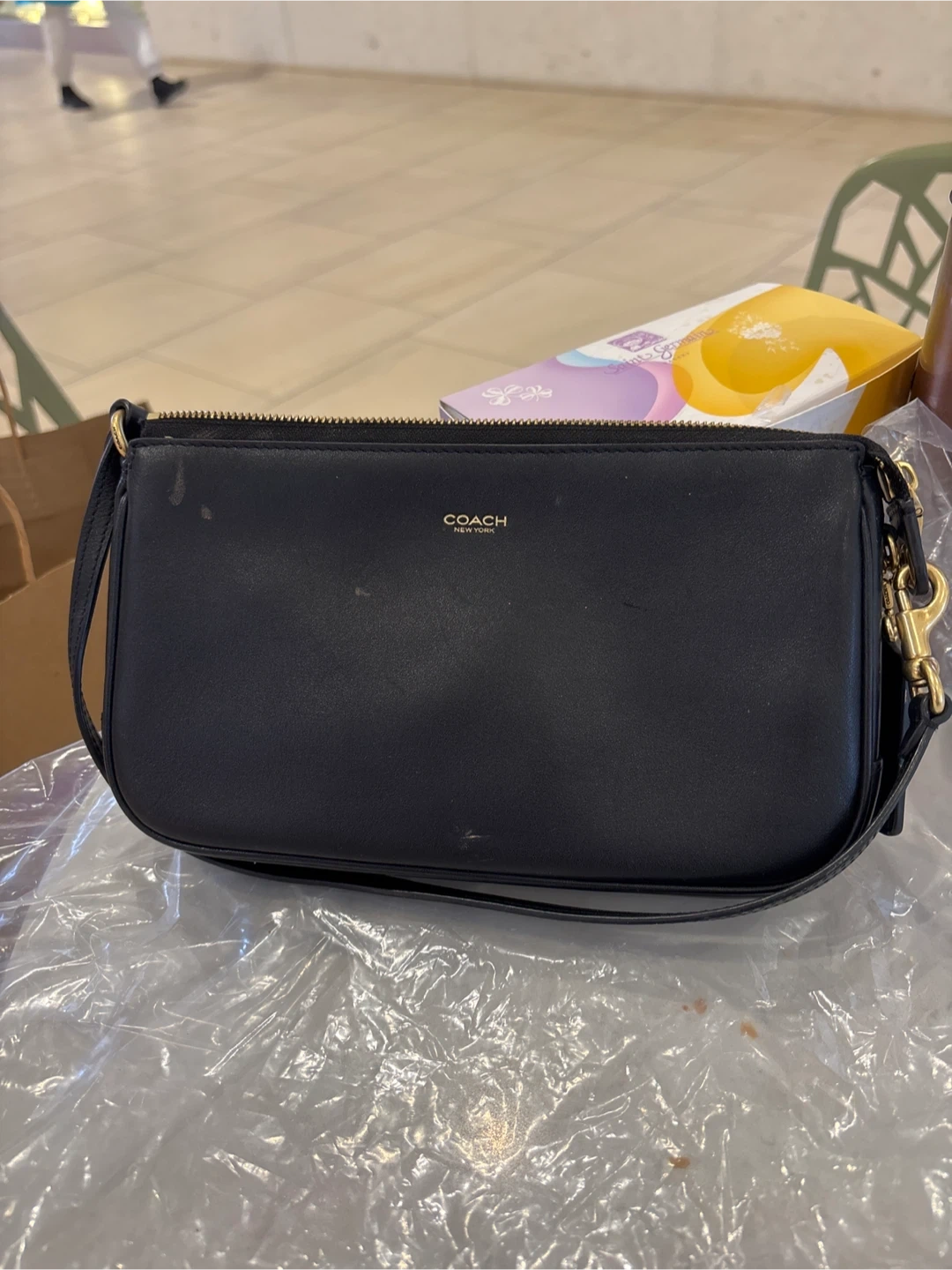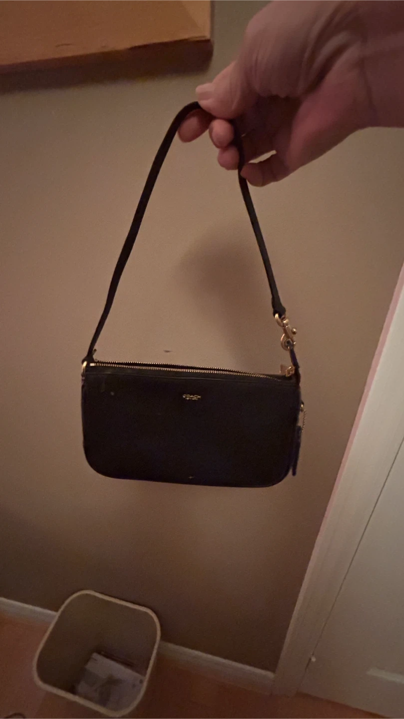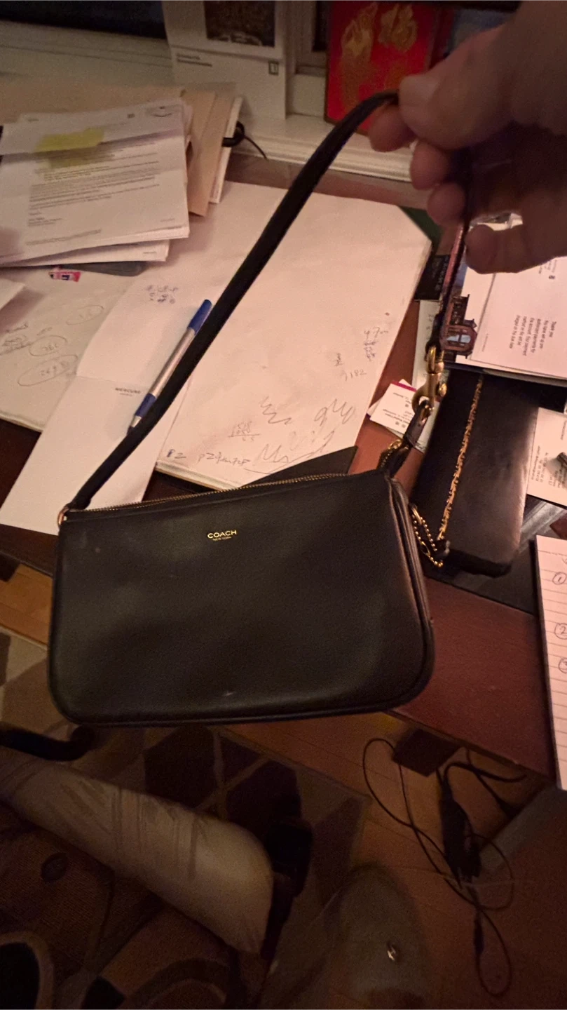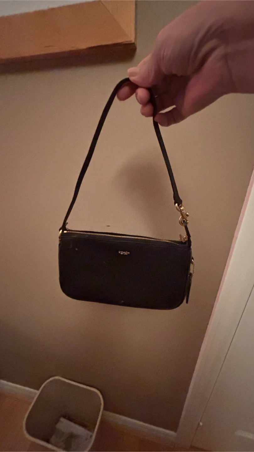 Selling a cute Coach mini baguette bag in black leather! It's a stylish and compact accessory, perfect for carrying essentials. The bag is in good condition and ready to add a touch of elegance to your outfit