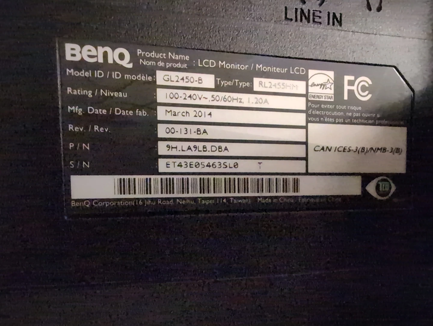 Selling a BenQ GL2450-B 24" 1080p 60hz LCD monitor.