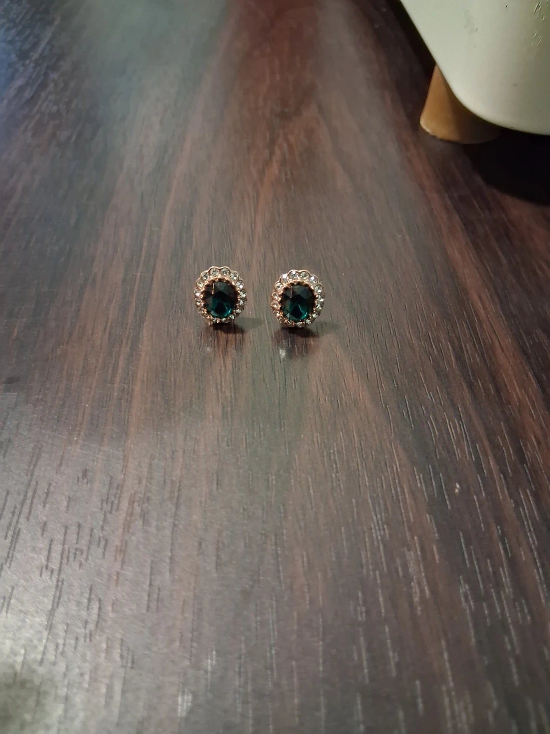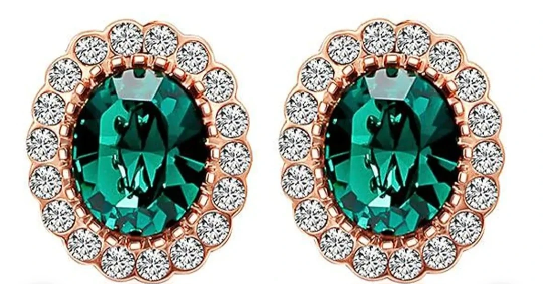 Rose Gold Plated Green Crystal Oval Studs 18K Alloy Jewellery
