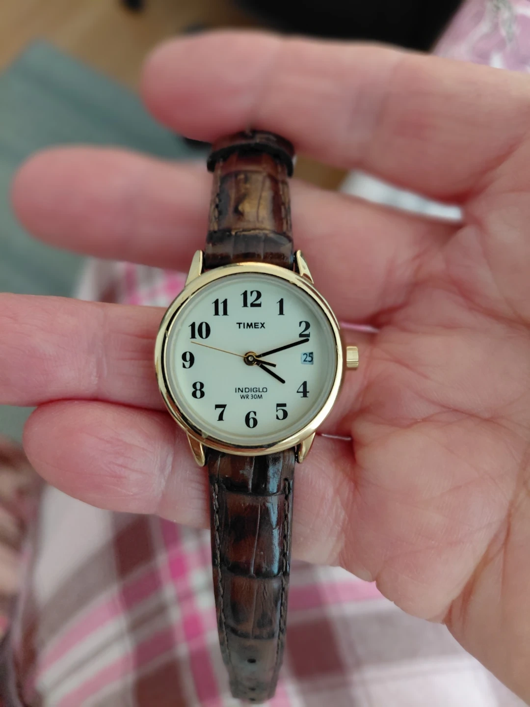 Selling a Timex ladies watch. It features an Indiglo dial(it lights up when the button on the side is pressed so great if you are in the dark) and is water resistant to 30M. The band is brown textured leather. Hardly used. CASH ONLY. NO DELIVERY.
