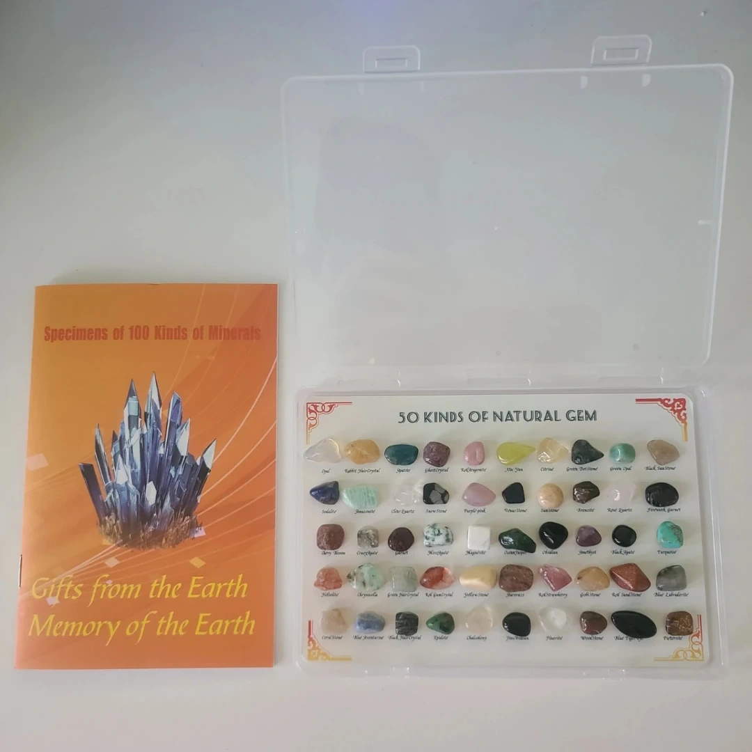 Selling collection of mineral specimens and natural gems! It includes a booklet with descriptions. It comes in a clear plastic case for easy storage and display. A great educational gift for anyone interested in geology.
