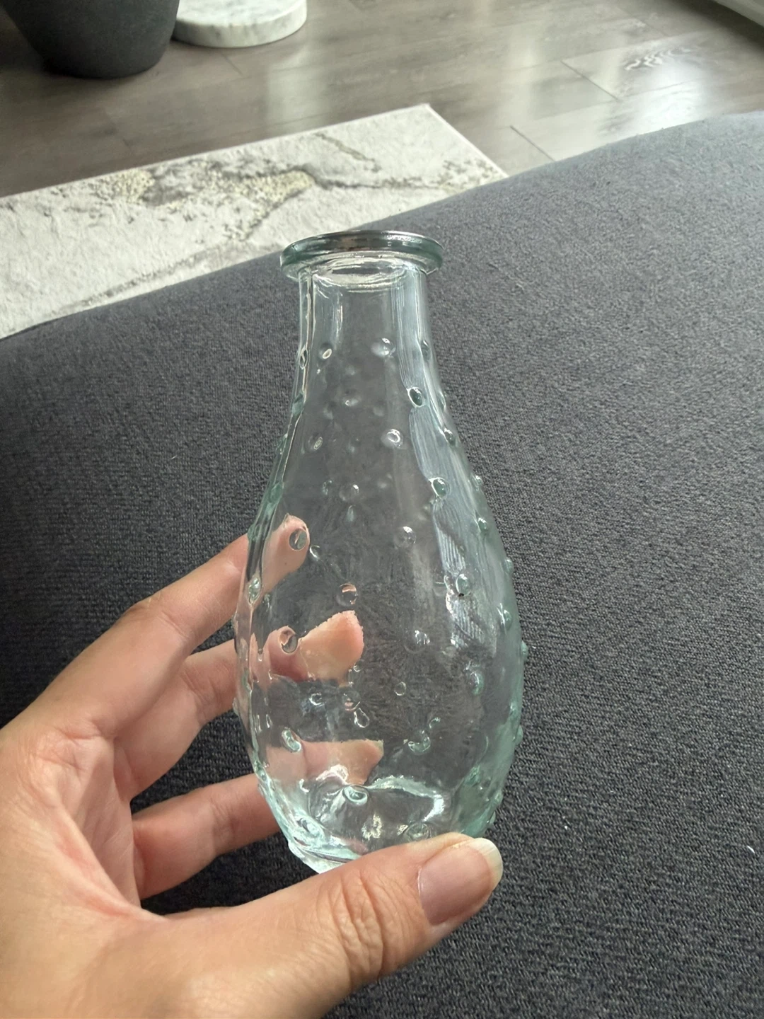 Selling a cute glass vase with a unique bubble design! It's in great condition and would look lovely with some flowers or as a standalone decorative piece