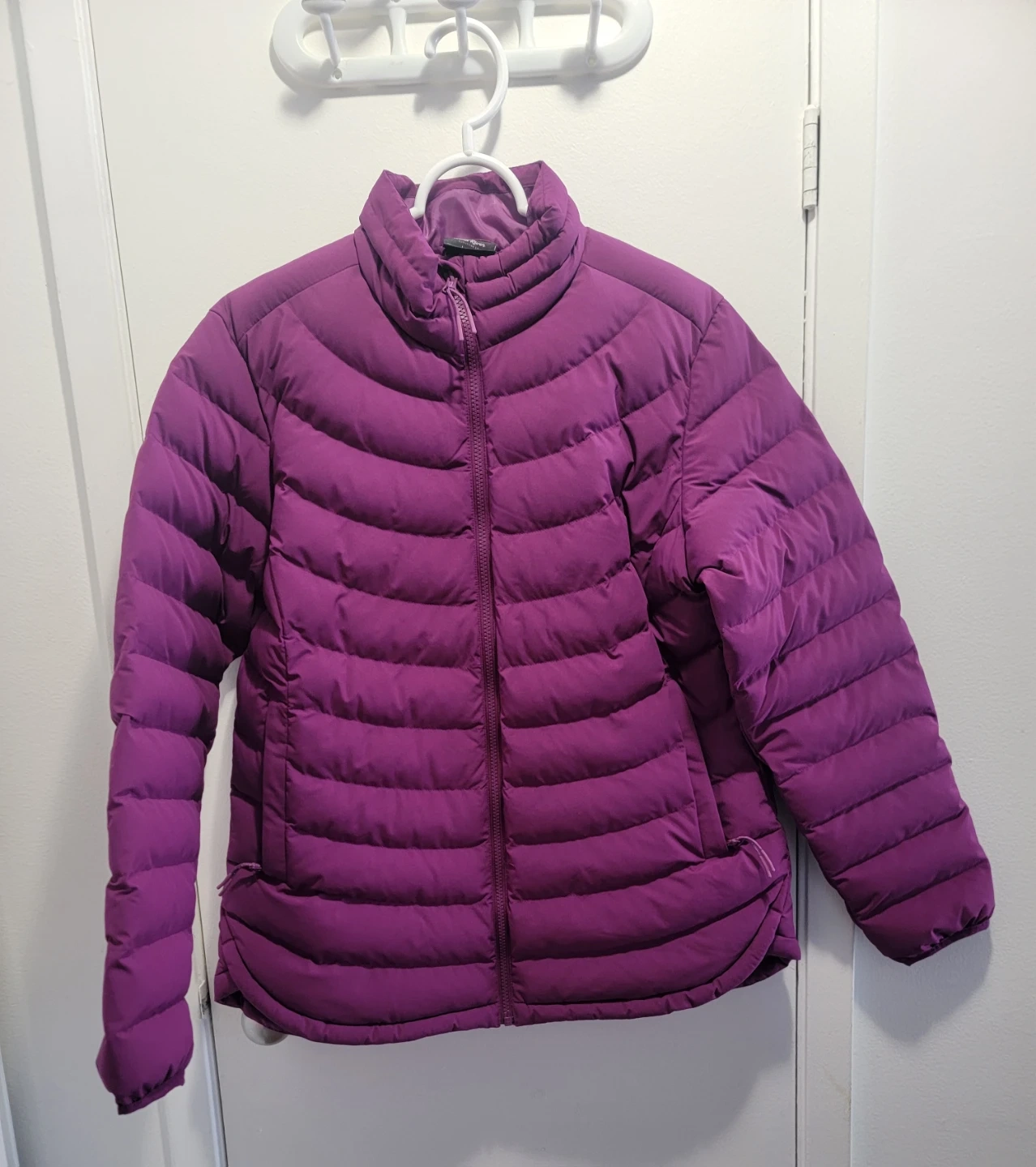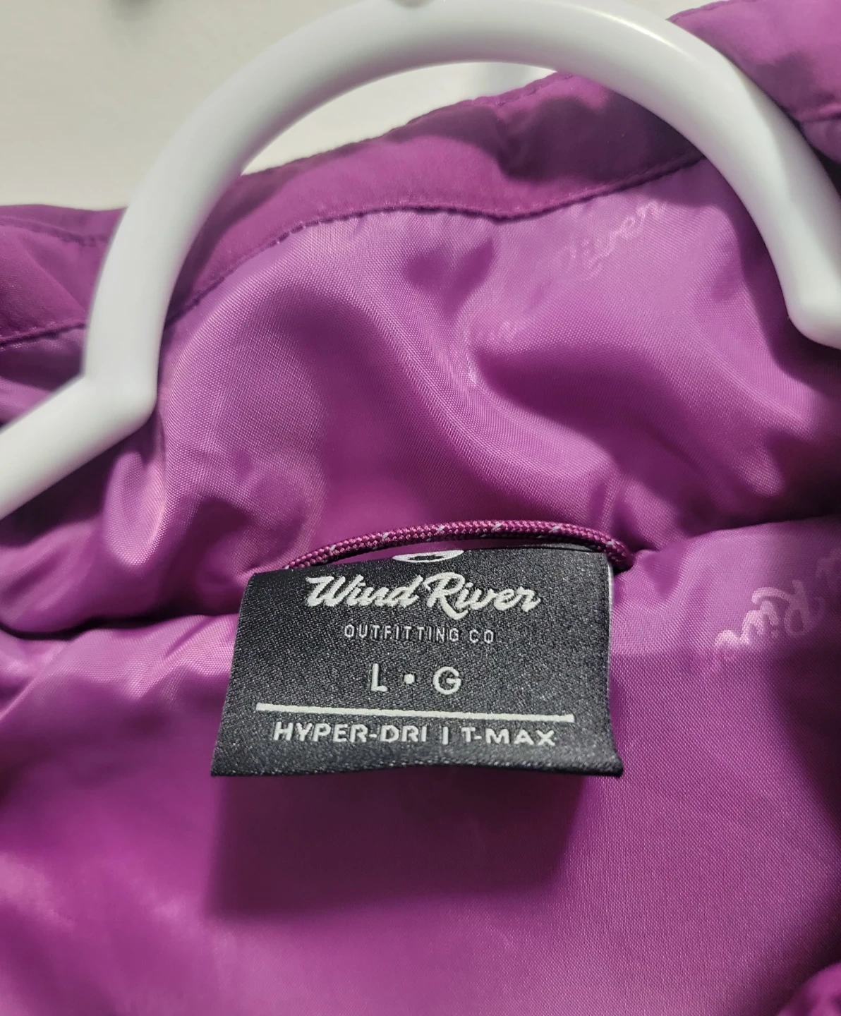 Selling a Wind River puffer jacket in a lovely shade of purple! It's a size large and features the Hyper-Dri T-Max technology, which is great for keeping you warm and dry. Perfect for those chilly Canadian days!