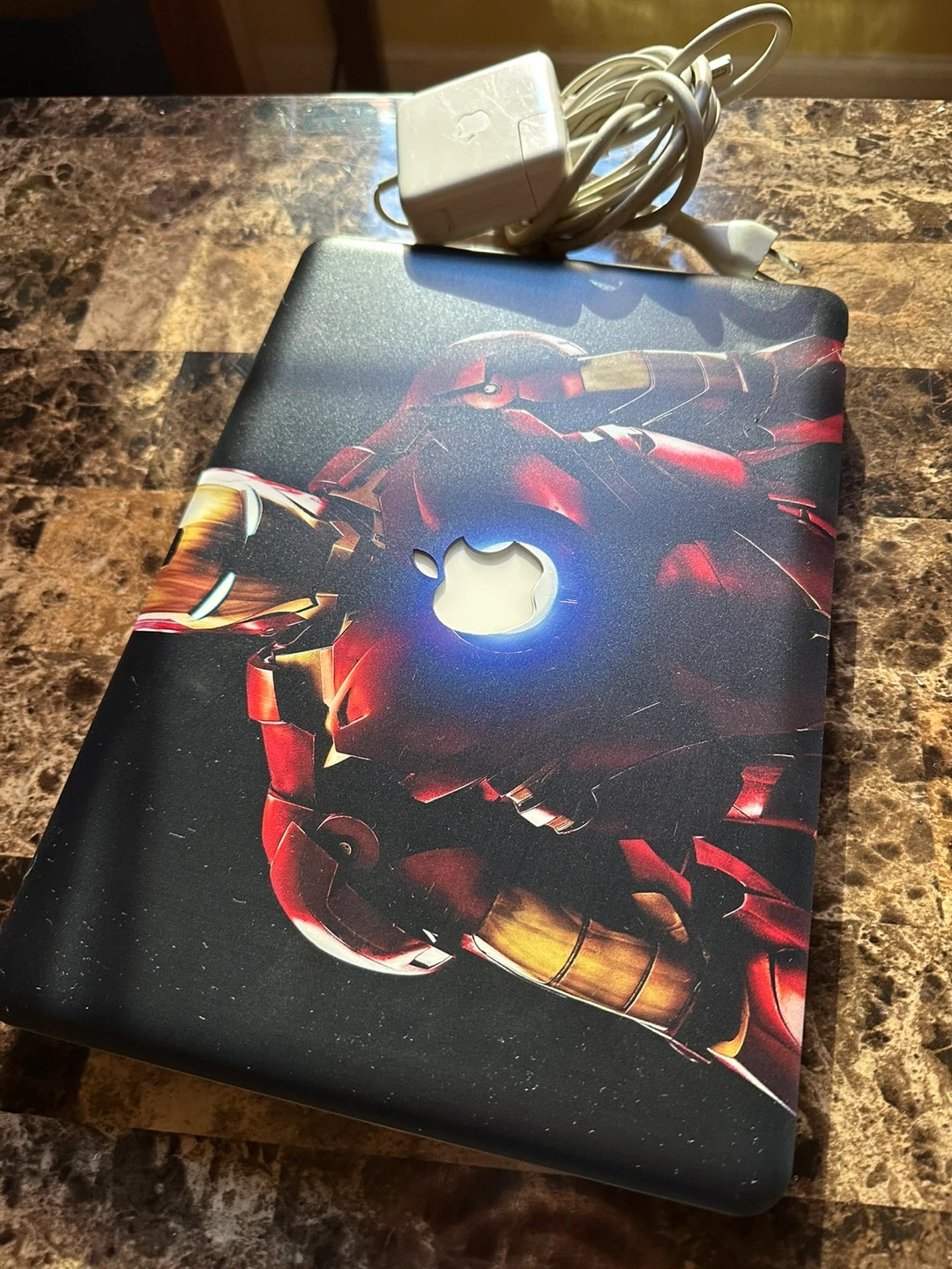 Selling a MacBook Pro with a custom Iron Man design on the cover! It comes with the charger. The laptop is in good condition and ready for its next owner