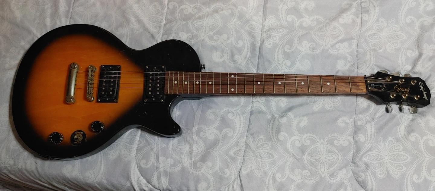 Selling an Epiphone Special Model guitar. It looks like it's in good condition and ready for a new owner. If you're interested in a reliable guitar, this could be a great option for you