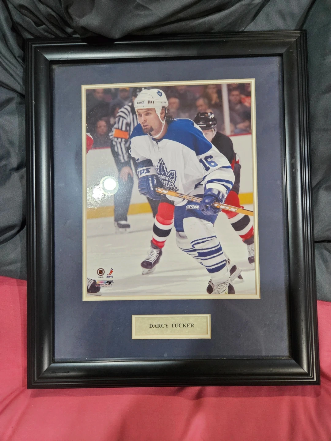 Framed photo of Darcy Tucker playing for the Toronto Maple Leafs. It's in good condition and ready to be displayed!
