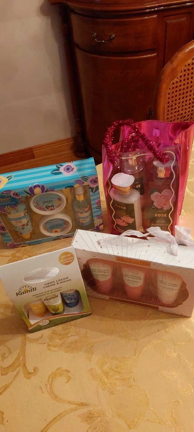 Here are some bath and body gift sets, perfect for pampering or gifting! These sets include a variety of lotions, washes, and creams to create a spa-like experience at home. These are all new.
