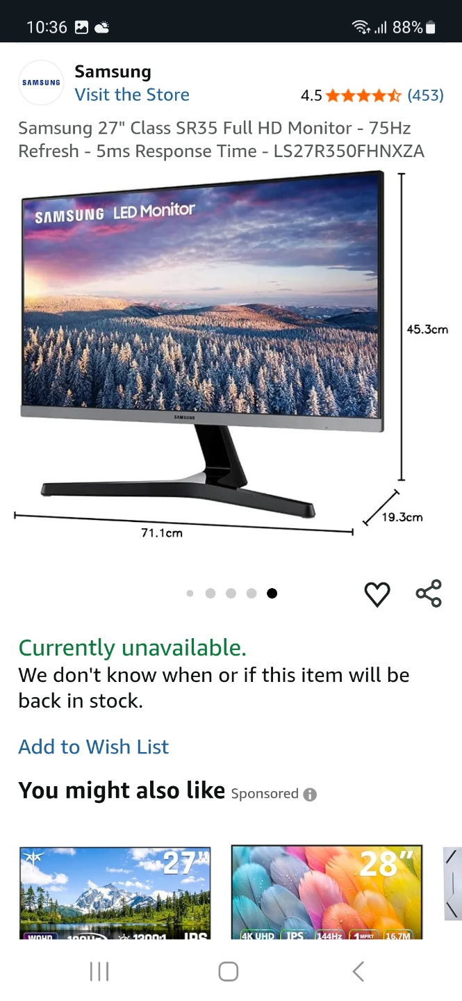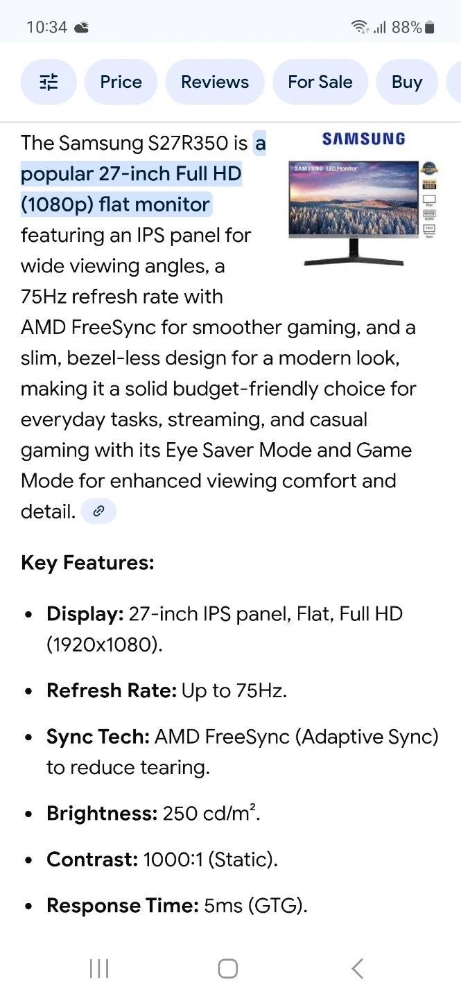 Samsung 27 inch monitor in excellent condition! It has HDMI and VGA ports. Power cord is included with the monitor. Perfect for home, office, editing, gaming, and movies. Selling because I have another monitor and won't be using this.