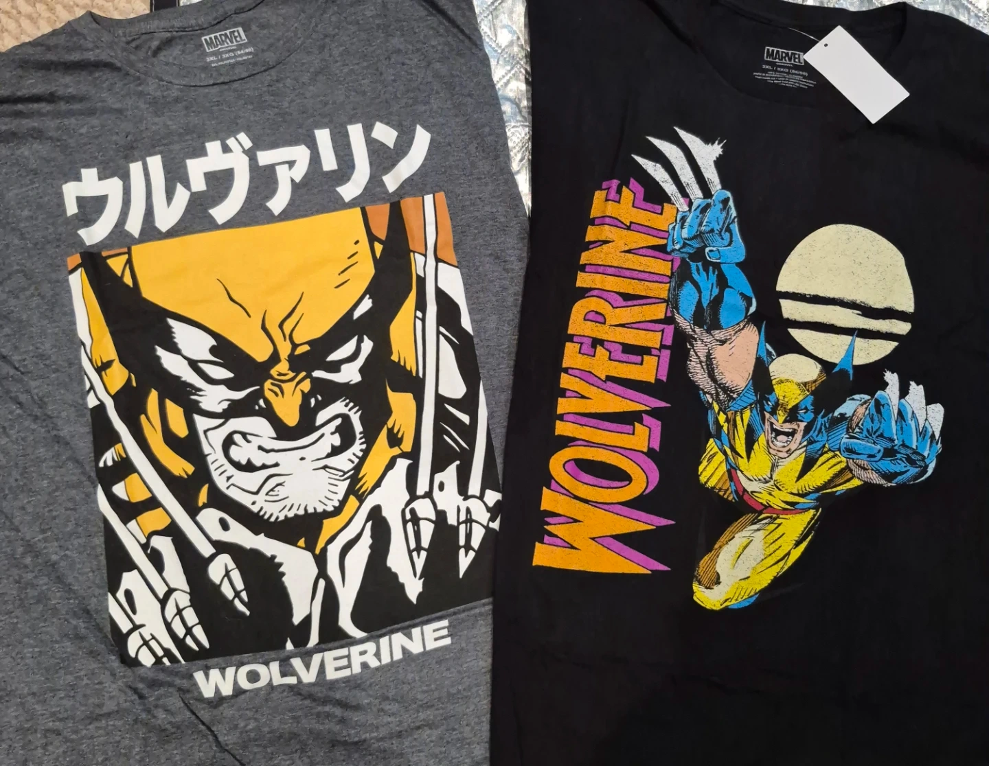 Selling two Marvel Wolverine t-shirts, both size 3XL! One is grey with Japanese text and the other is black with a classic Wolverine graphic. Great for any Marvel fan!