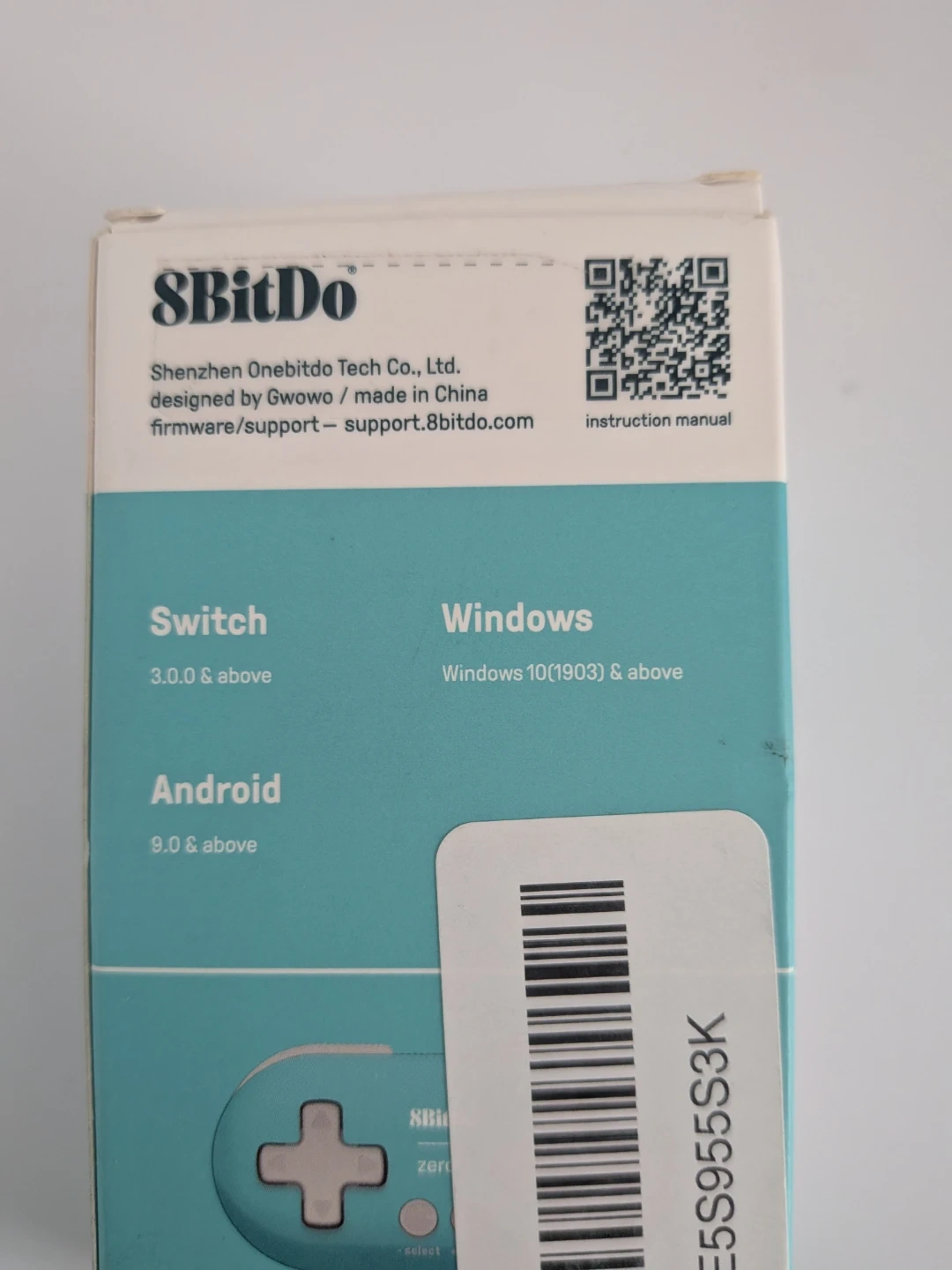 It's compatible with Switch, Windows, Android, macOS, Steam, and Raspberry Pi. The box includes the gamepad, instruction manual, and USB cable.