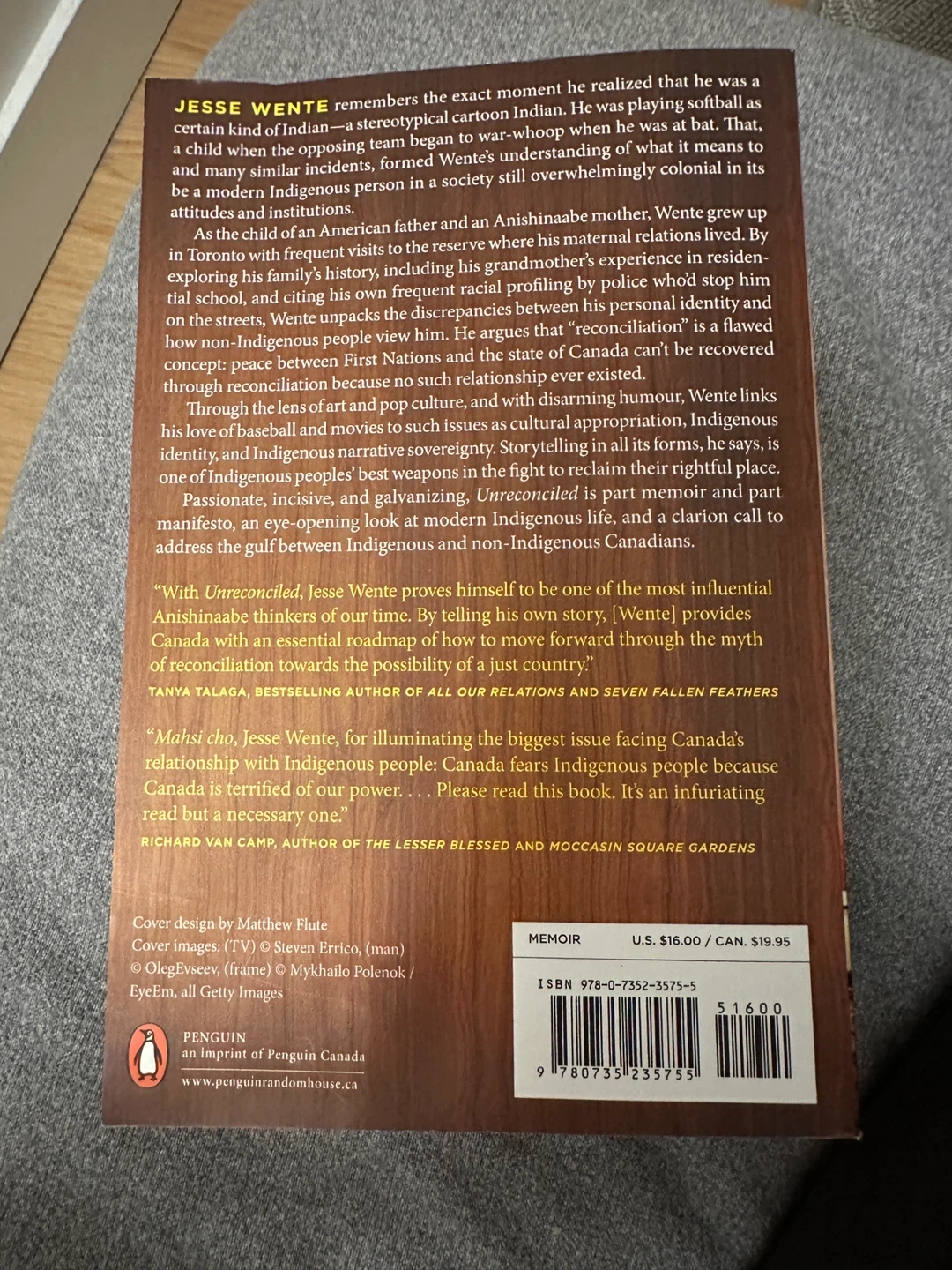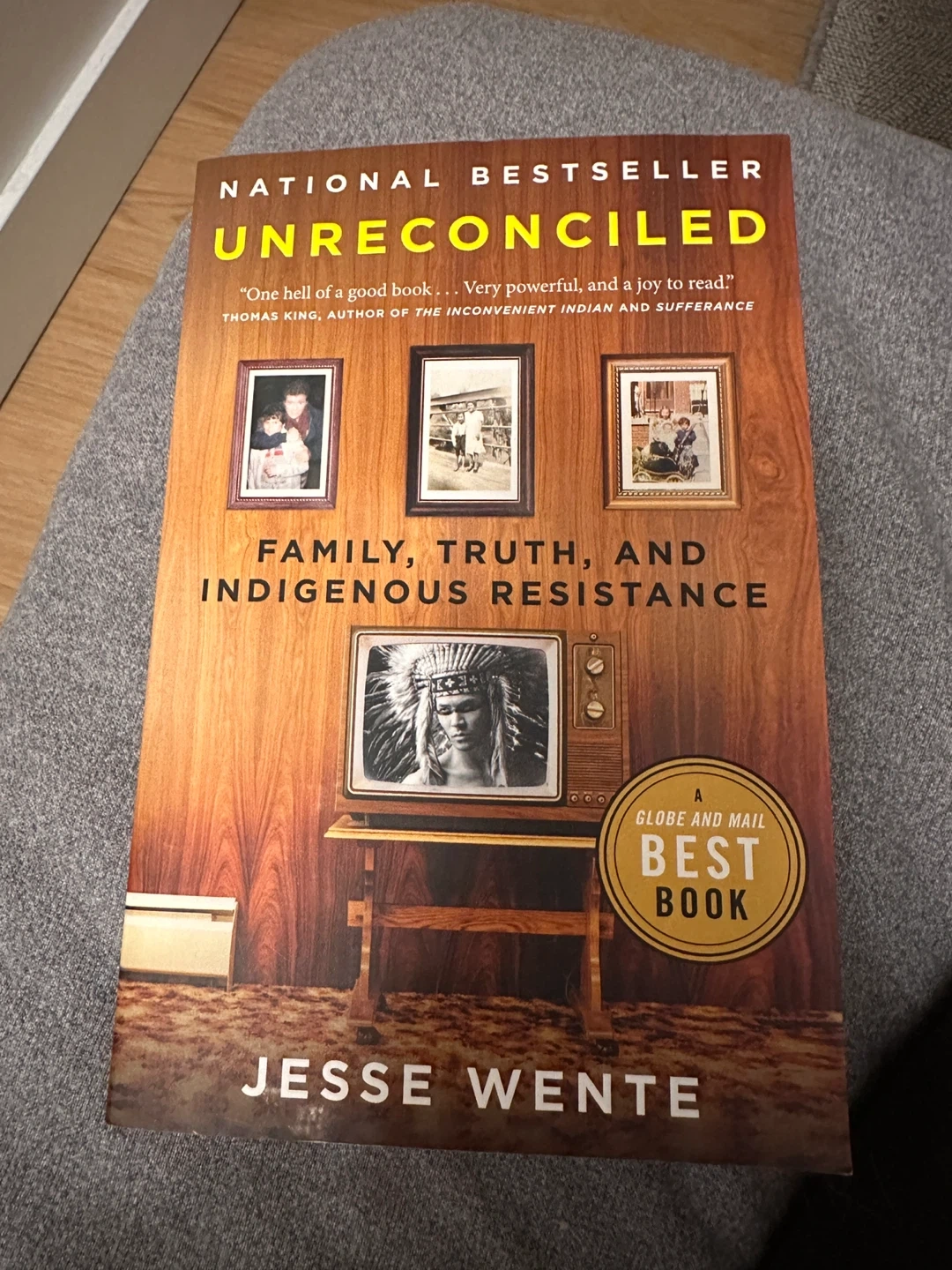 Selling the book Unreconciled by Jesse Wente. This national bestseller explores family, truth, and Indigenous resistance. It is a memoir that provides an eye-opening look at modern Indigenous life and reconciliation in Canada
