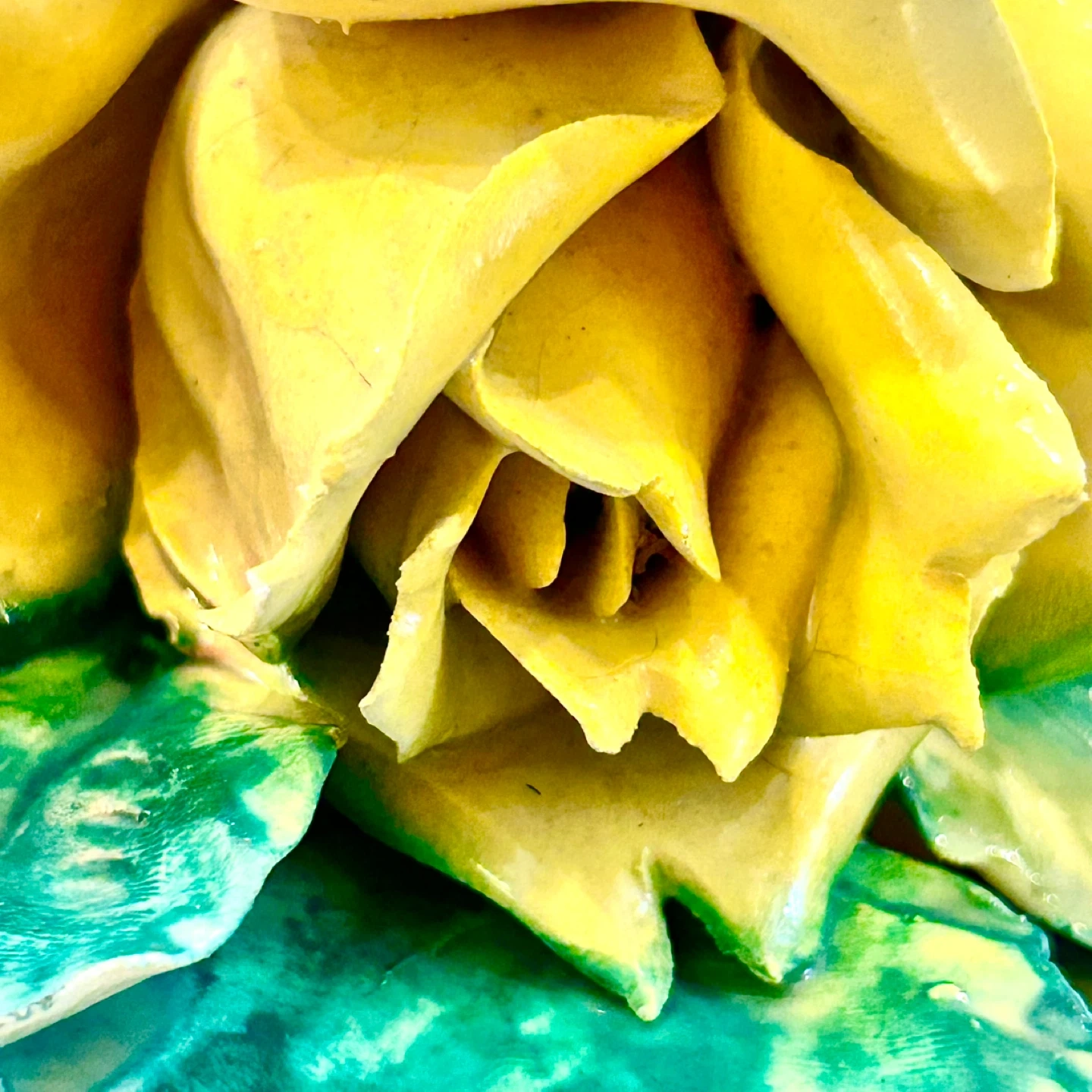 • Yellow rose: tiny tip chips only, described as very minimal, plus small edge wear/chipping on the underside of the yellow petals.
