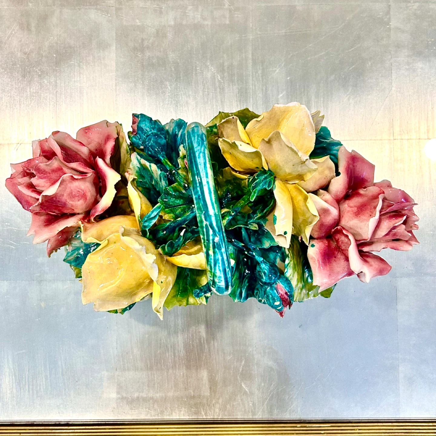 “Mid- to late-20th century Italian, Capodimonte-style floral basket, marked ITALY.”