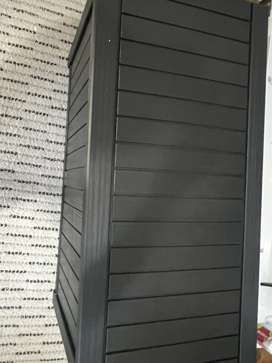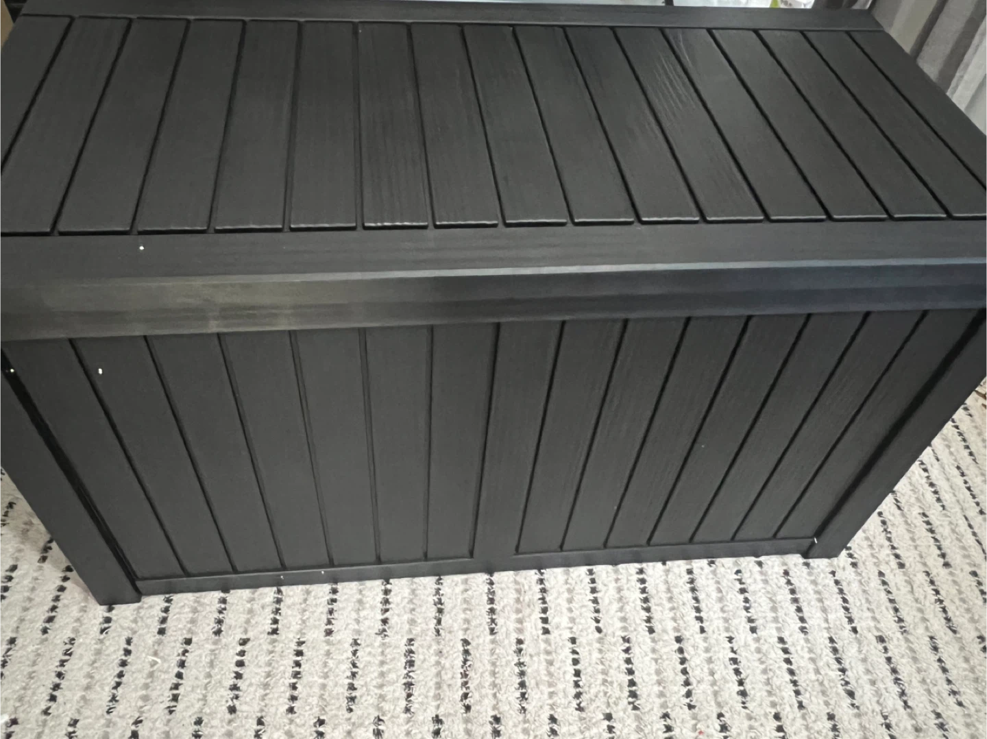 I'm selling a black outdoor storage box! It's in great shape and perfect for storing cushions, gardening tools, or anything else you need to keep dry and organized on your patio or deck(59.8x28.9x5.3inch)