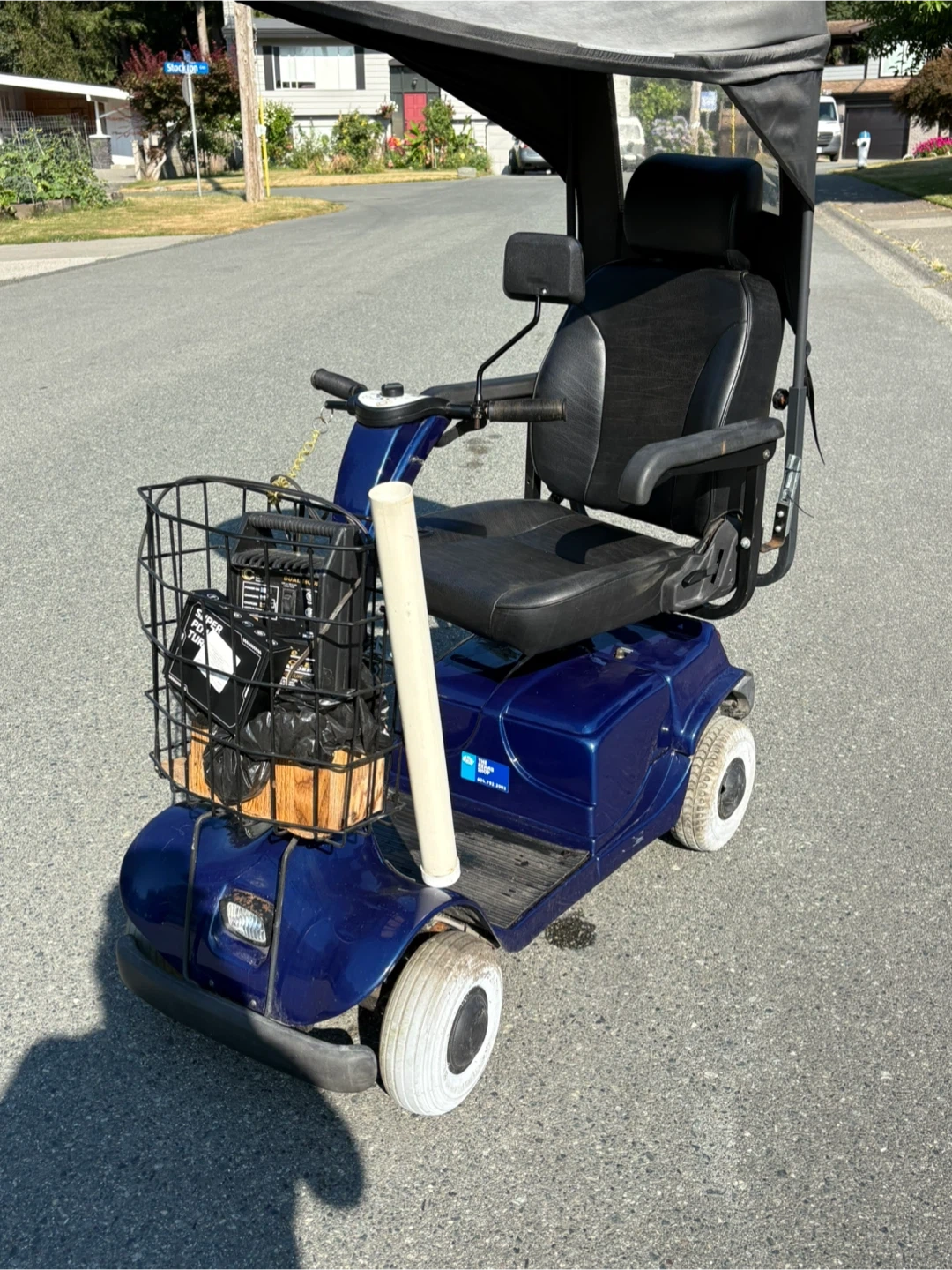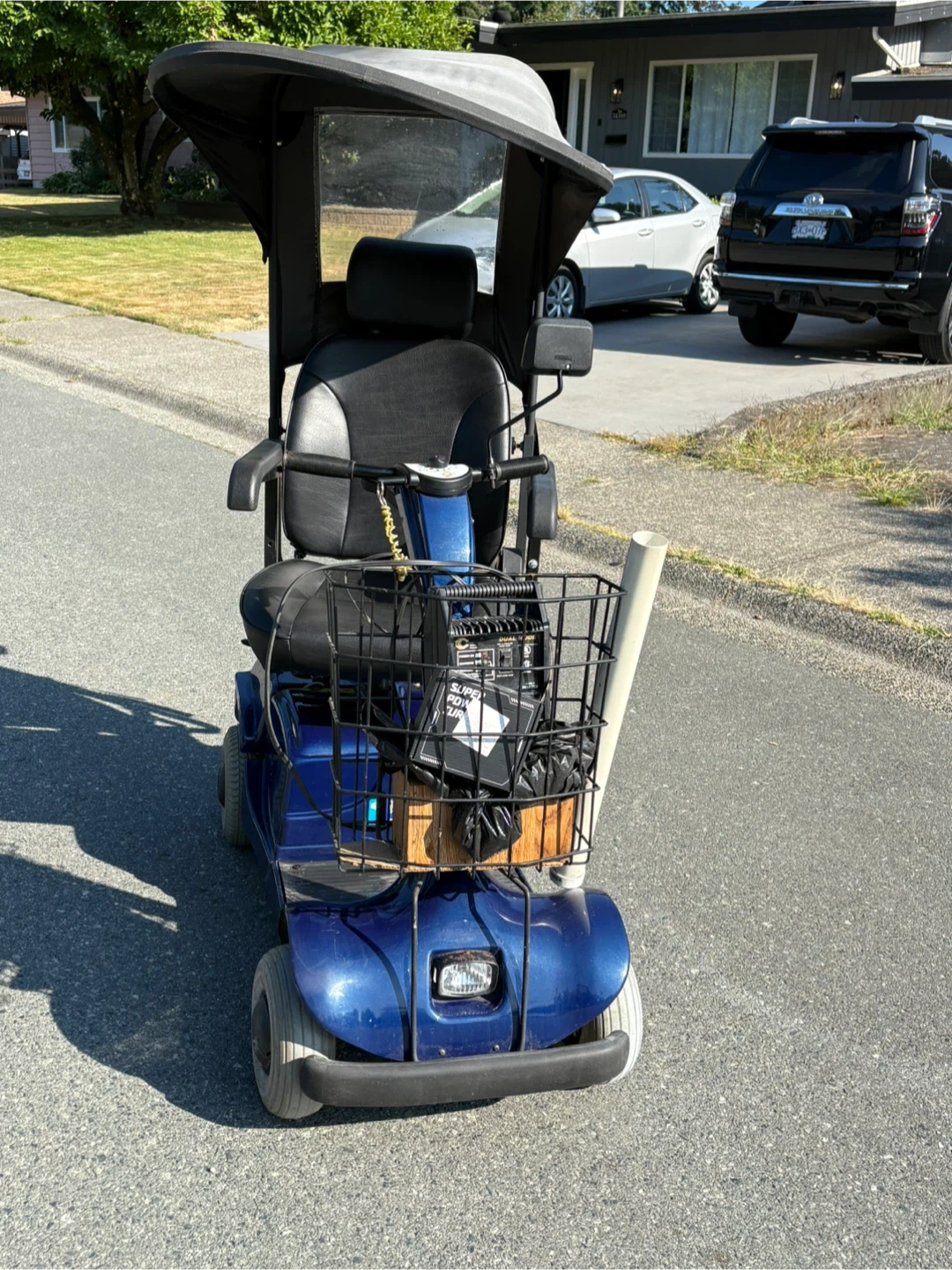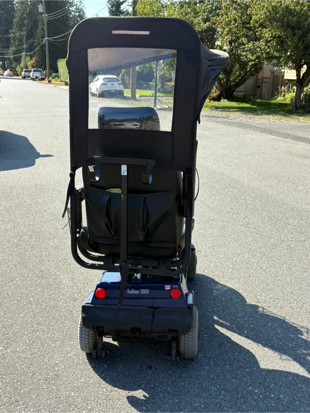 Selling a Fortress 2000 mobility scooter. It features a comfortable seat, canopy, and a front basket for storage. Perfect for getting around!