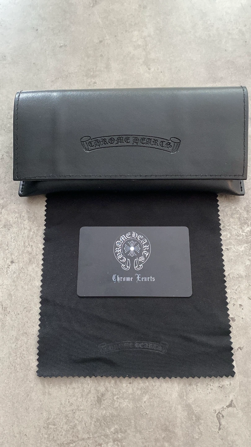 Selling a pair of Chrome Hearts glasses with a clear frame. The glasses come with their original box and a cleaning cloth. They are in great condition! And blue light in glasses.