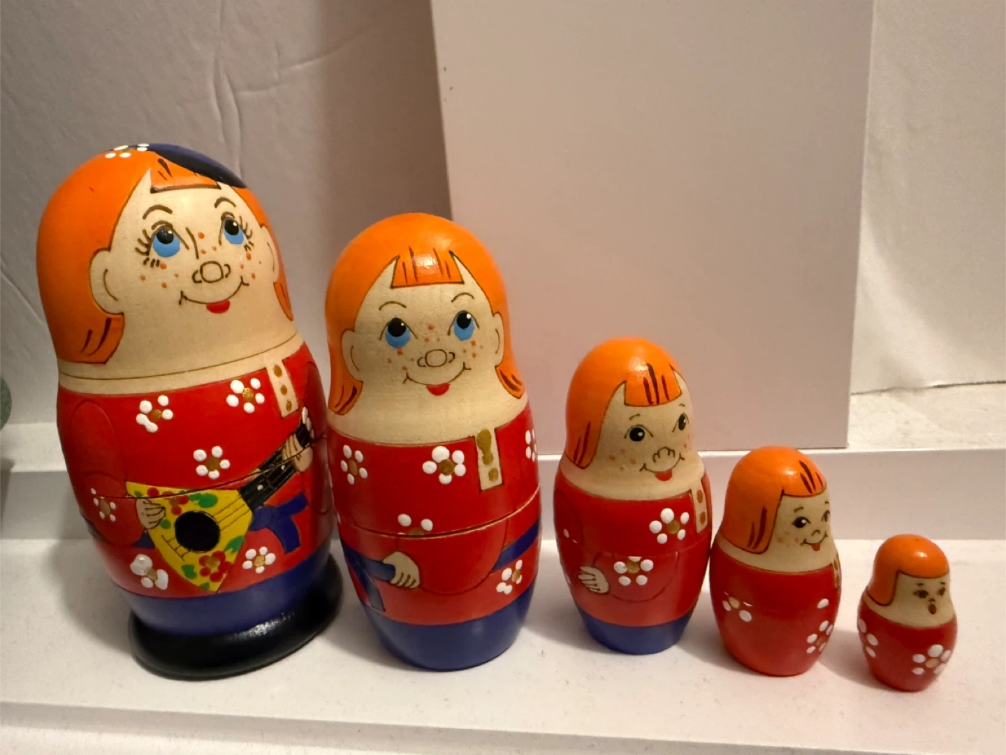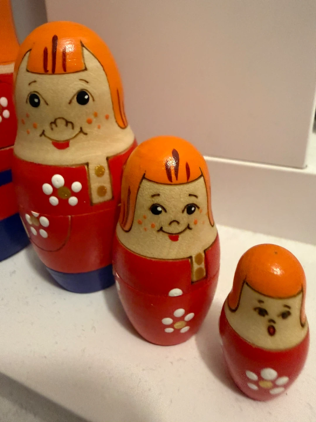Here's a set of adorable Matryoshka nesting dolls! They're colourful and in great shape. Perfect for adding a touch of folk art to your home or as a unique gift