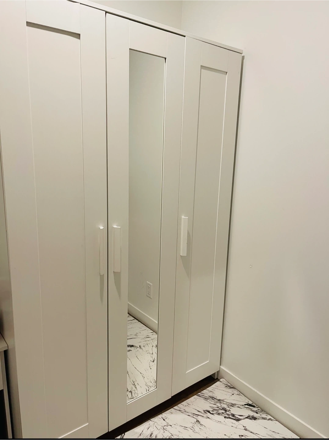 Selling a white wardrobe. It features a mirrored door, which is super handy! It's in great shape and ready for a new home.