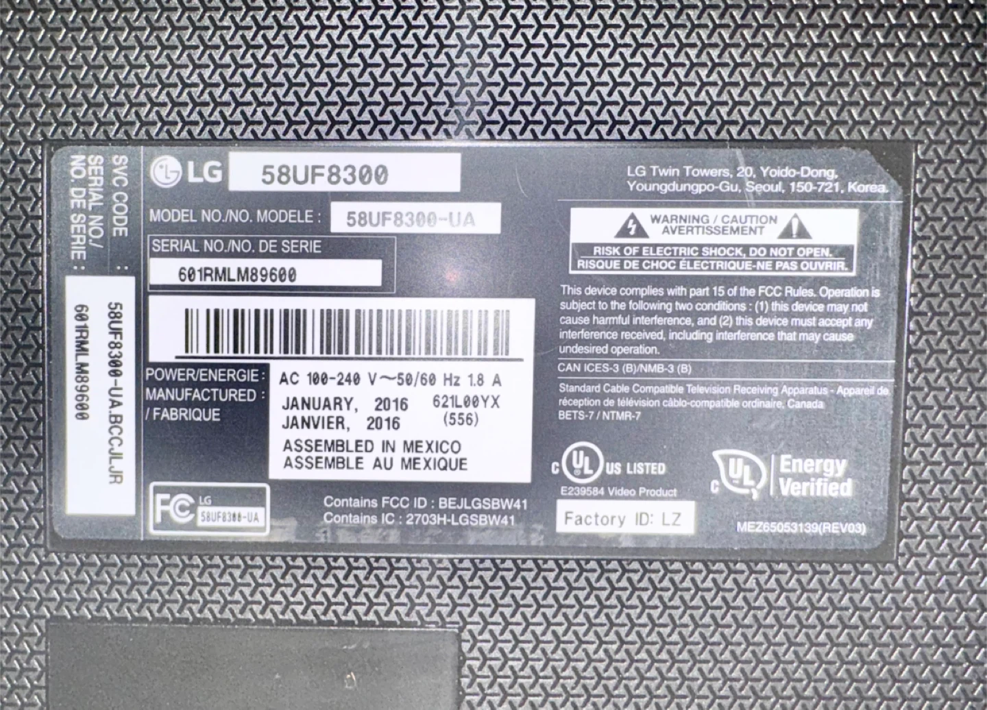 Selling an LG 58UF8300 58-inch 4K UHD Smart TV for its screen or for parts.