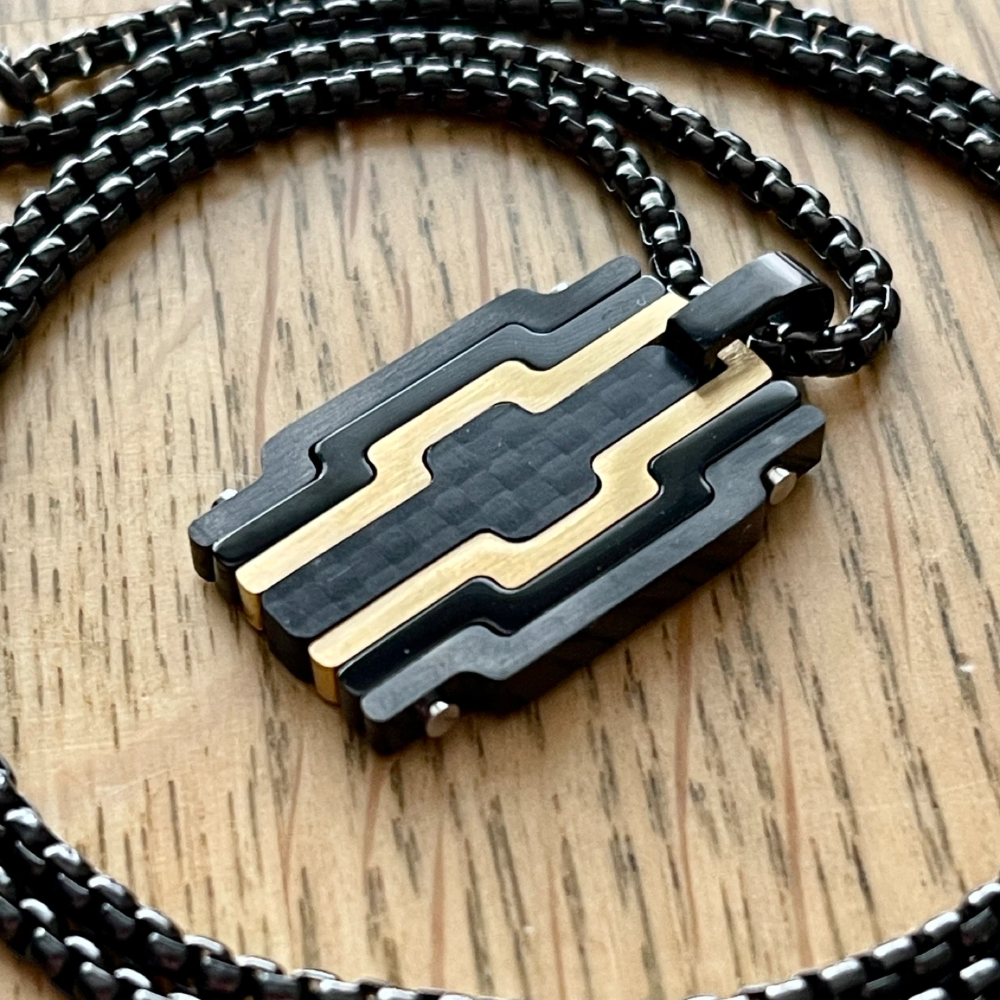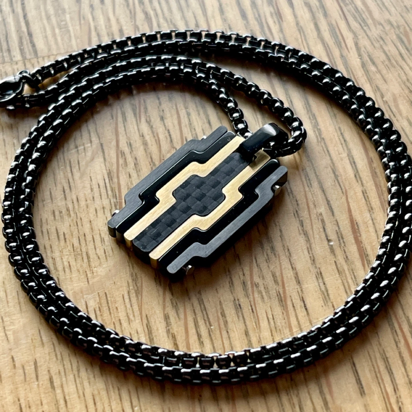 Modern minimalist carbon inlay stainless steel necklace